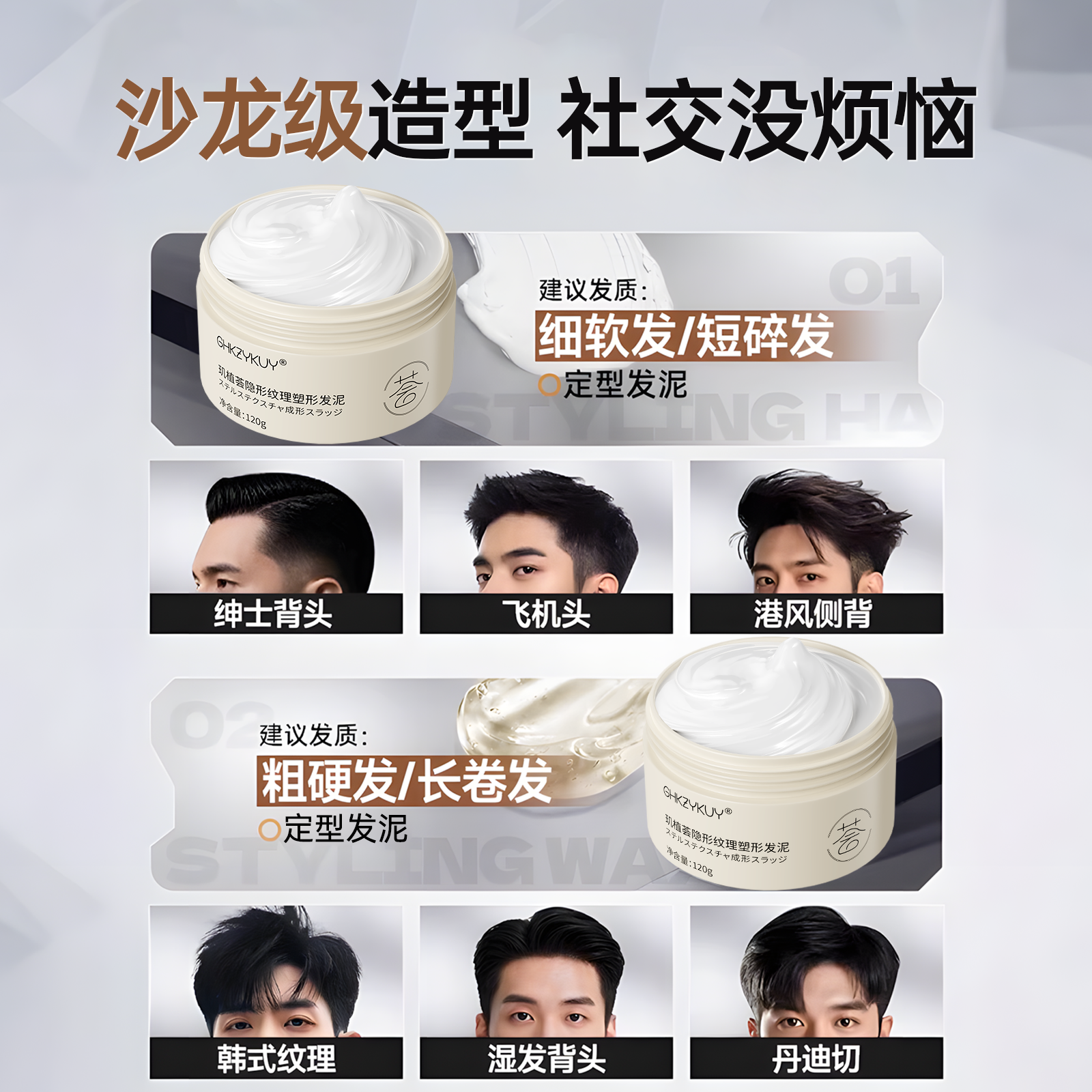 即山川0#软发泥造型乳男士发泥发胶自然哑光定型水润