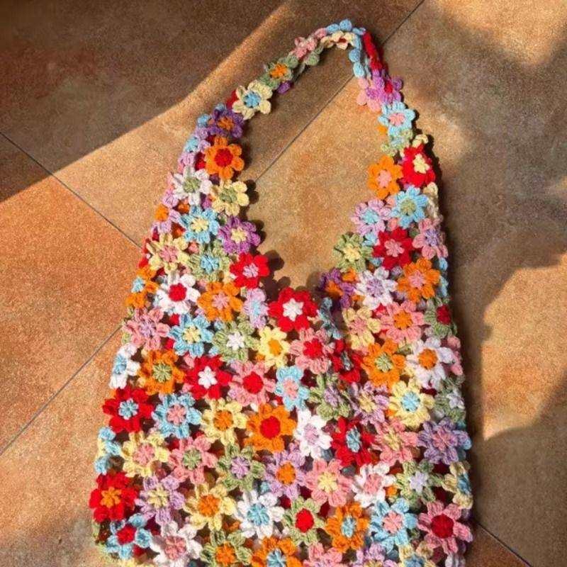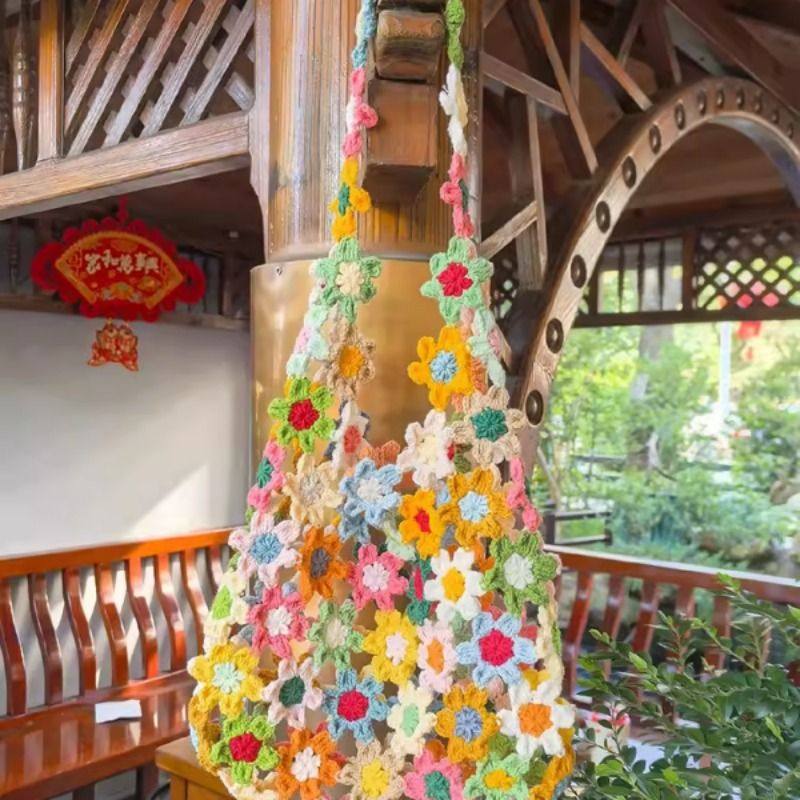 手工编织包包钩针diy材料包毛线自制针织花朵单肩包打发时间礼物
