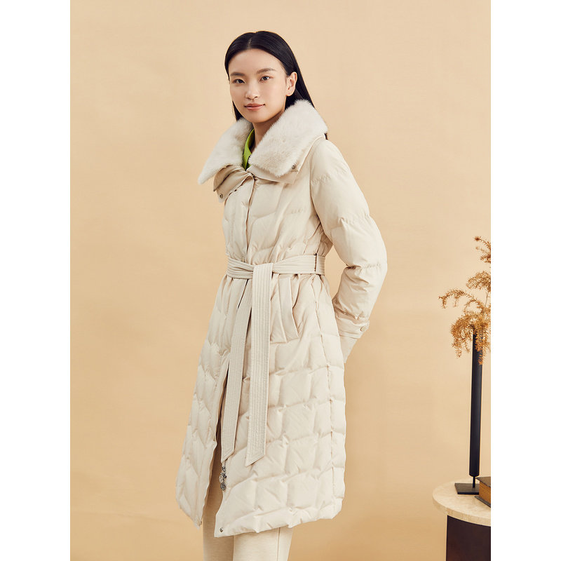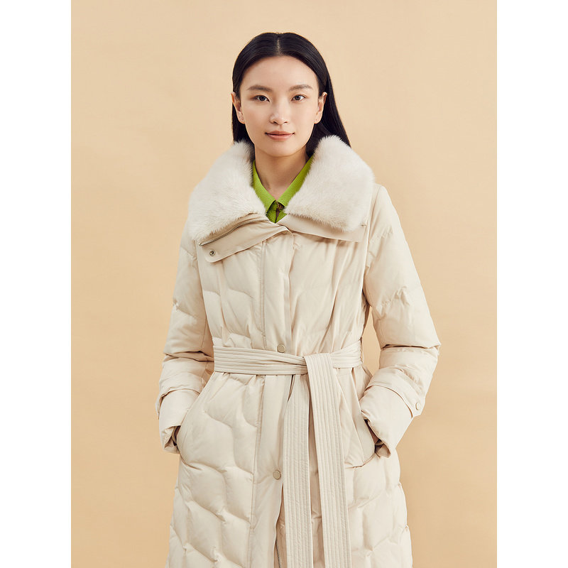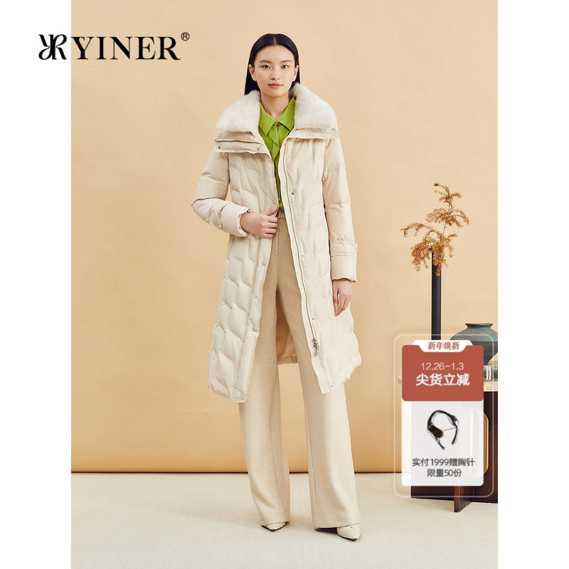 【云感白鹅绒】YINER音儿冬季蓬松厚实水貂毛领长羽绒服
