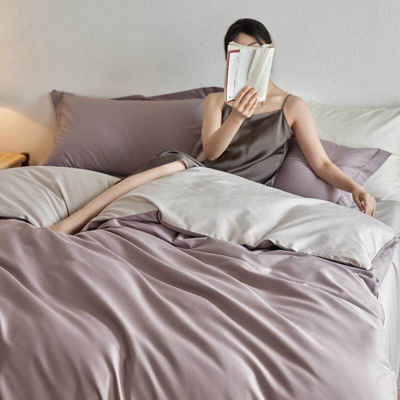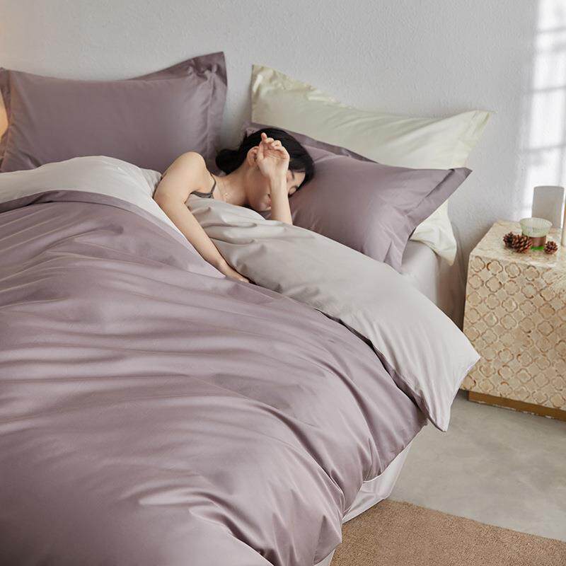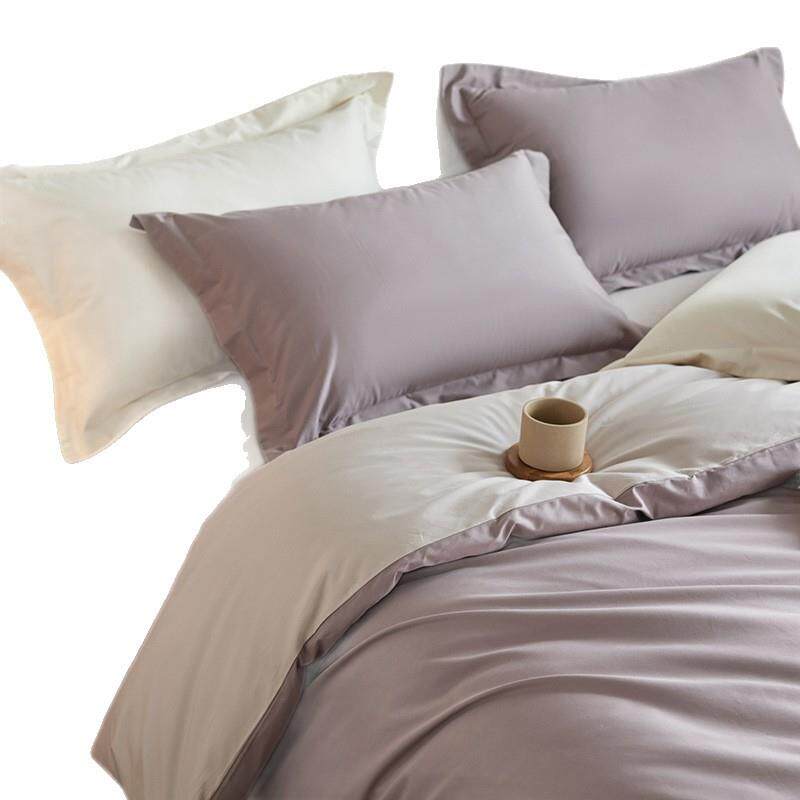 纯色双拼A类纯棉100S贡缎长绒棉四件套四季款全棉被套床笠可机洗4