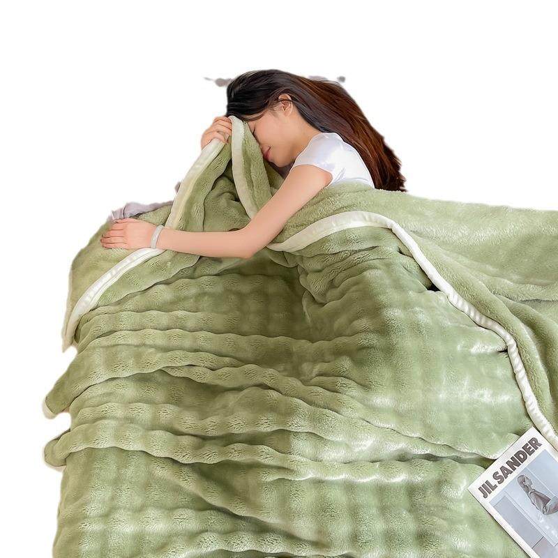 厂家直销轻奢兔兔绒毛毯子法莱绒毯加绒保暖休闲盖毯宿舍办公室