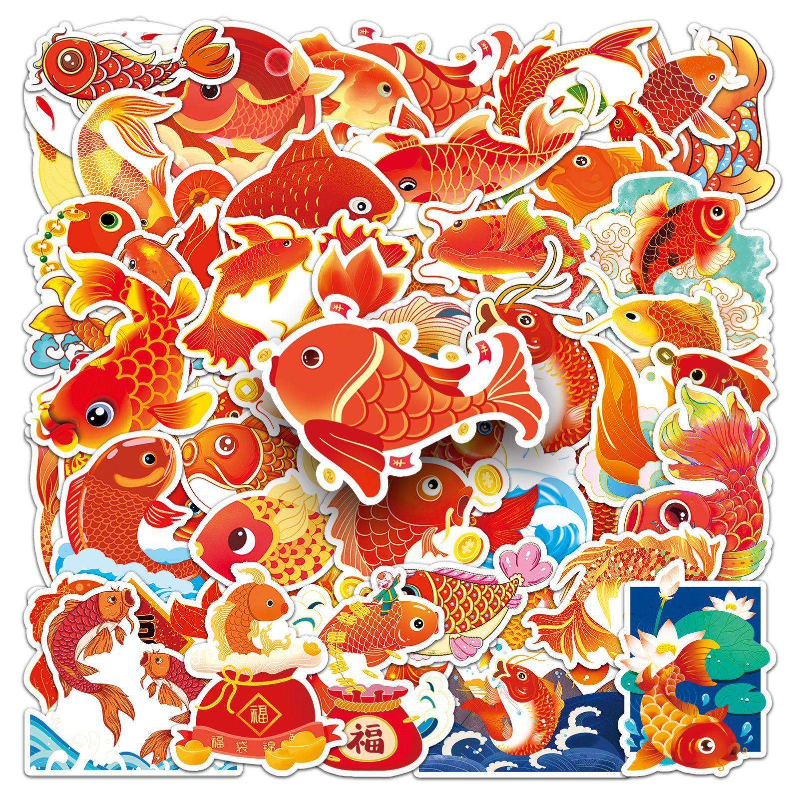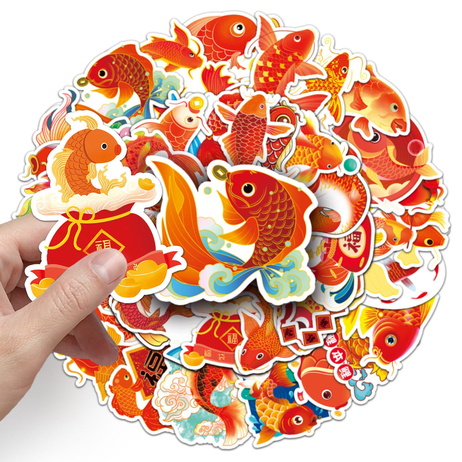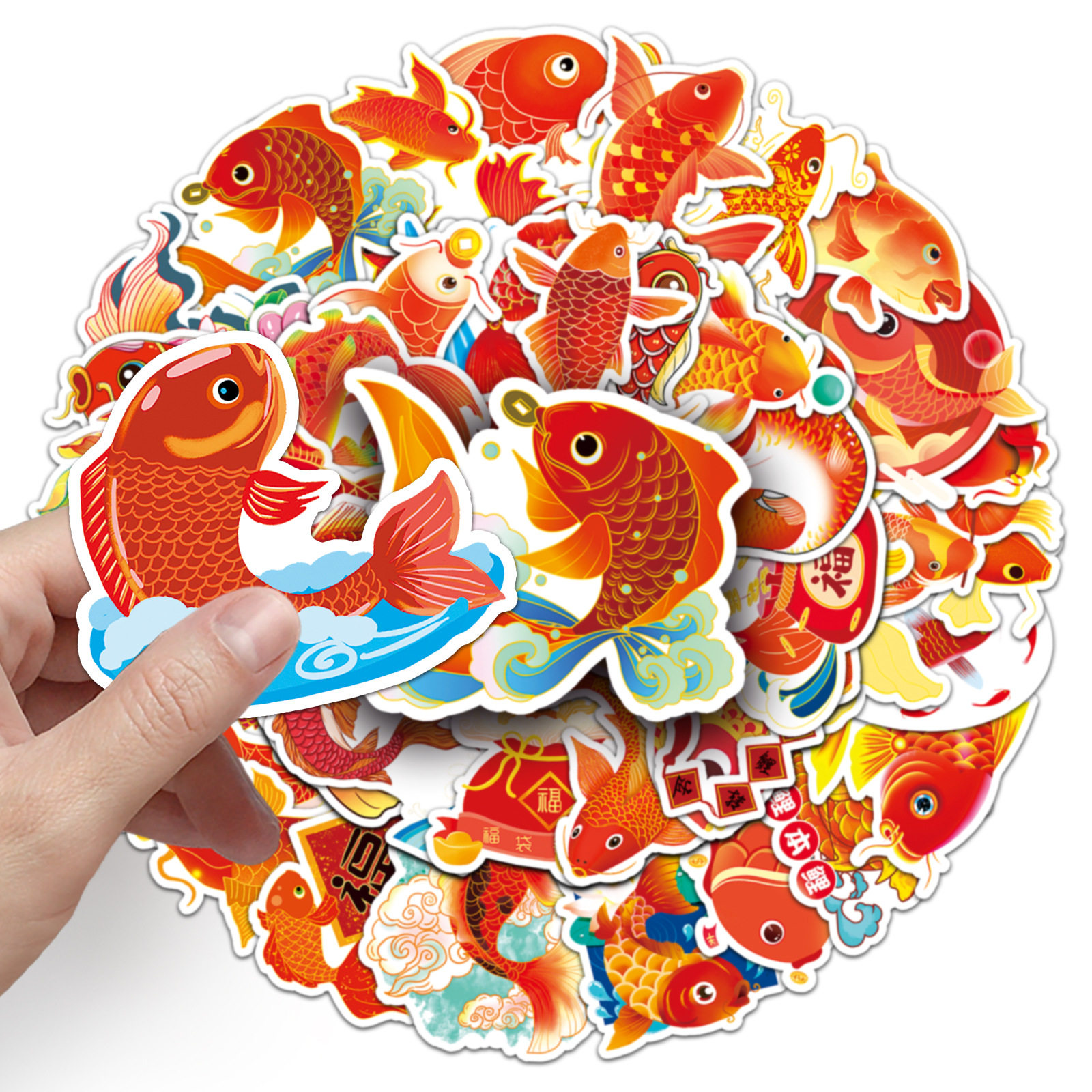 50张锦鲤贴纸鲤鱼金鱼新年春节中国喜庆动物装饰手帐卡通儿童奖励