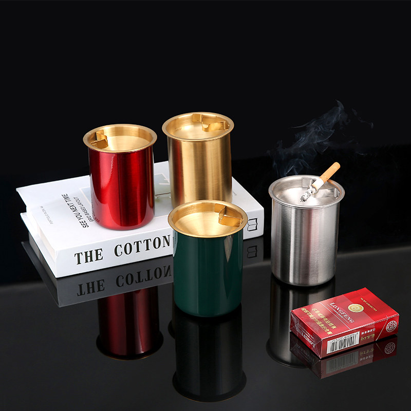 创意个性轻奢不锈钢烟灰缸防烟味车载潮流家用客厅防飞灰高档带盖