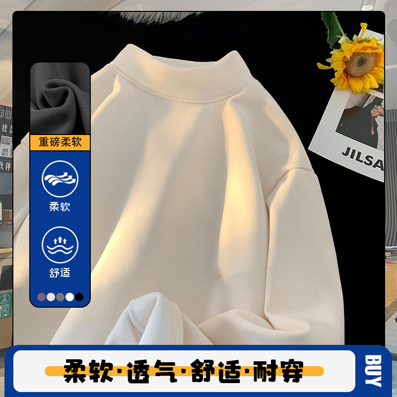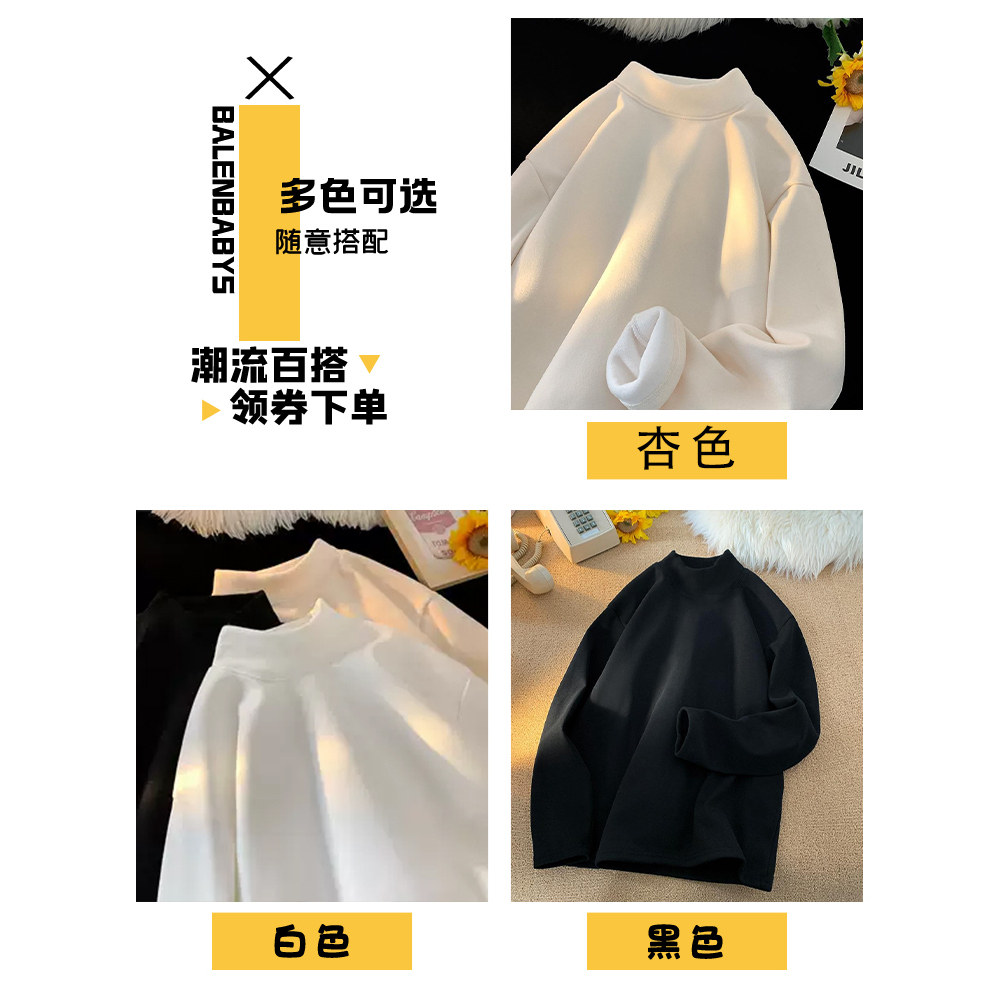 德绒打底衫男秋冬季半高领潮流潮牌加厚内搭百搭纯色男款长袖t恤
