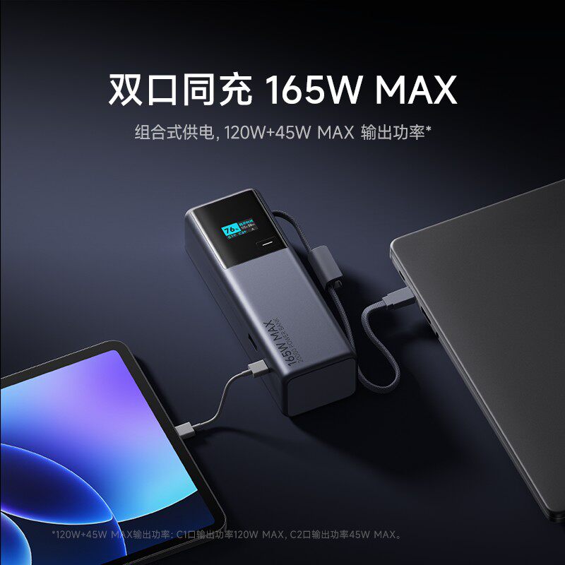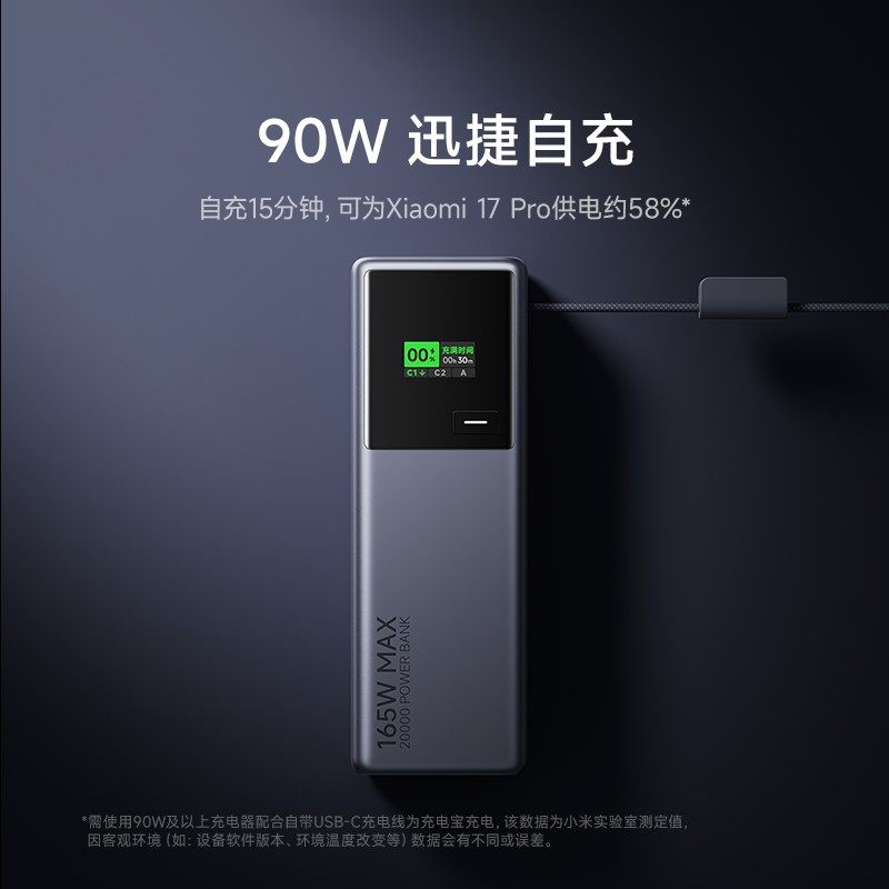【3C认证】新品小米自带线充电宝20000毫安165W高功率双向超快充单口120W大容量小巧便携适用于笔记本电源