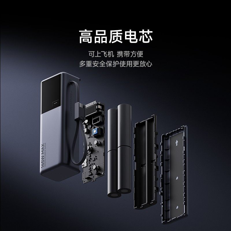 倍思20000毫安充电宝官方旗舰店正品2025新款快充超薄小巧便携自带线大容量移动电源便携适用小米苹果16专用