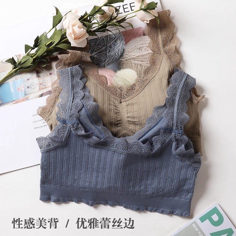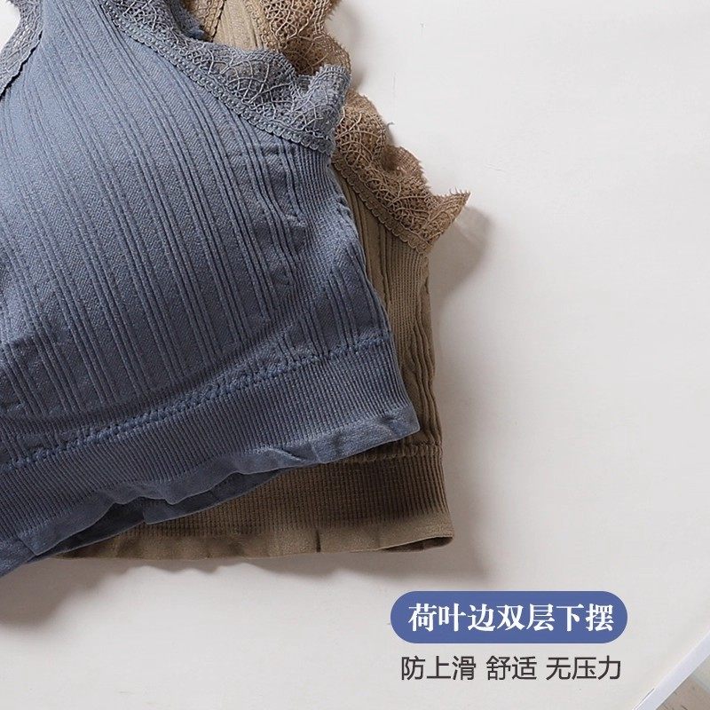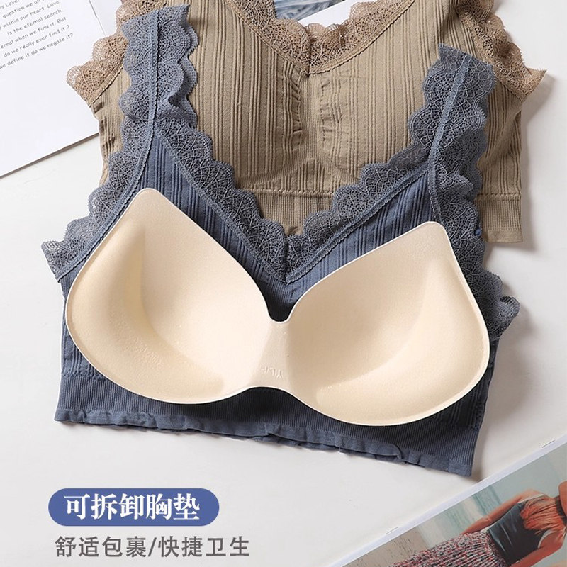 无钢圈上托无痕内衣女背心式蕾丝性感小胸聚拢美背内搭运动文胸罩