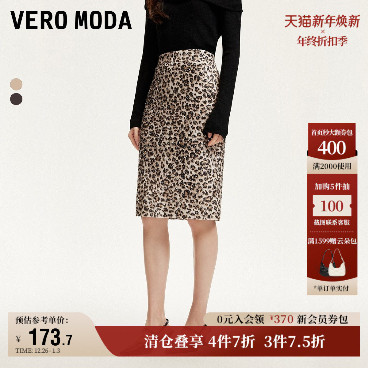 【美式复古】Vero Moda半身裙秋冬新款豹纹亮片包臀女人开叉中裙