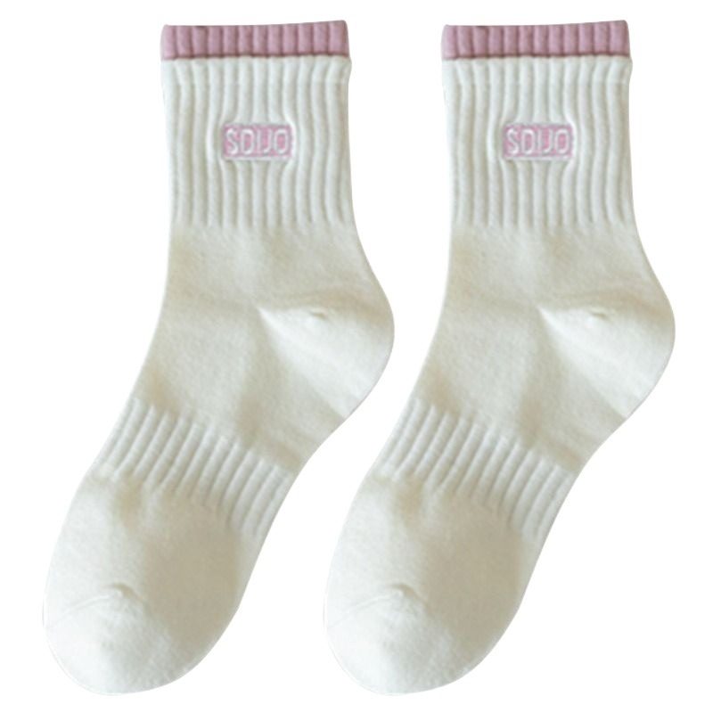 袜子女中筒袜潮百搭日系堆堆袜女士袜子防滑抗菌灰色刺绣紫色简约