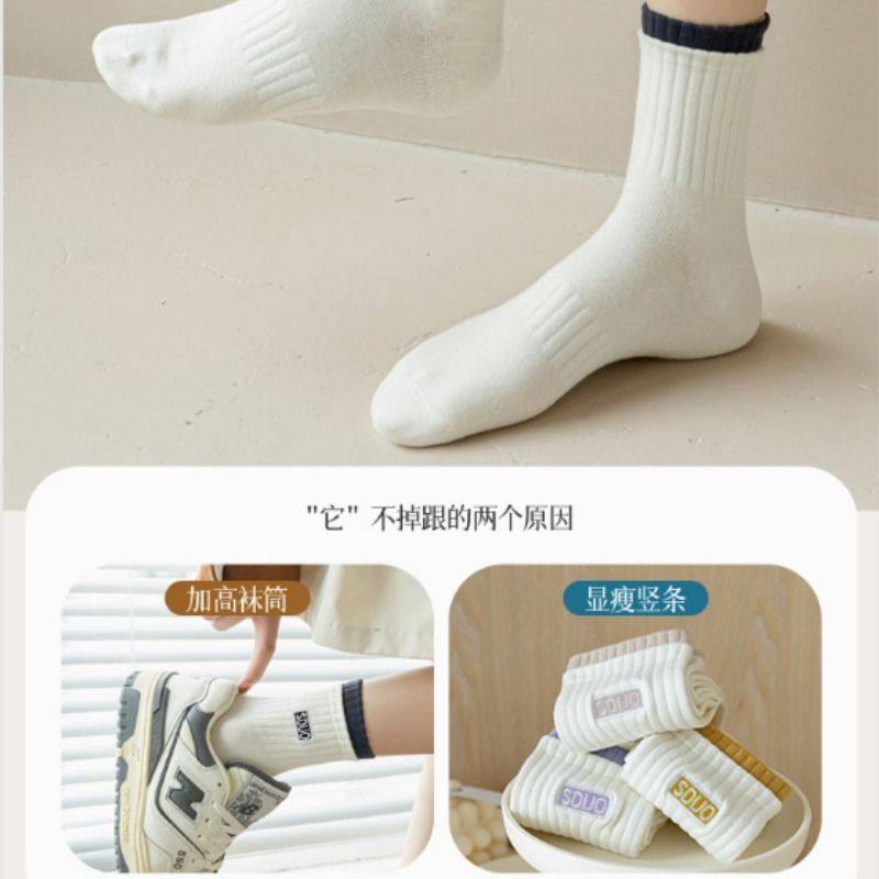 袜子女款纯棉中筒袜秋冬季抗菌防臭吸汗运动棉袜春秋款无骨短筒袜
