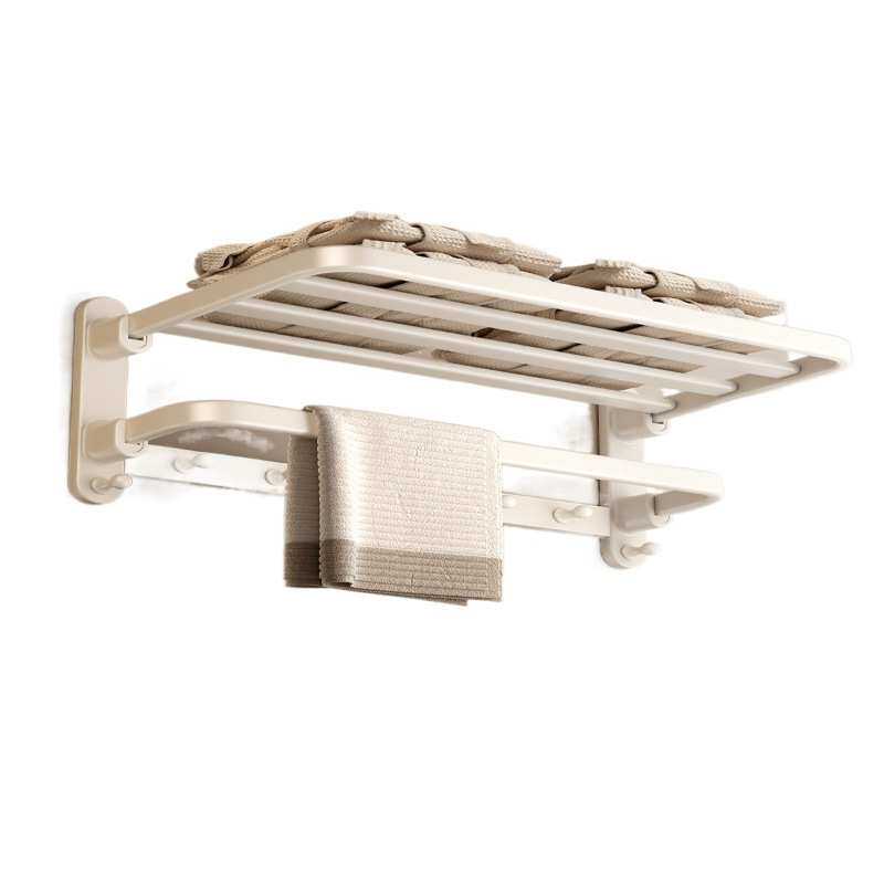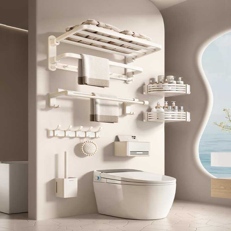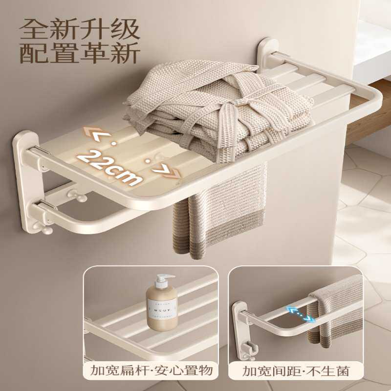 毛巾架免打孔奶油风浴室置物架厕所折叠浴巾架五金挂件一体收纳架