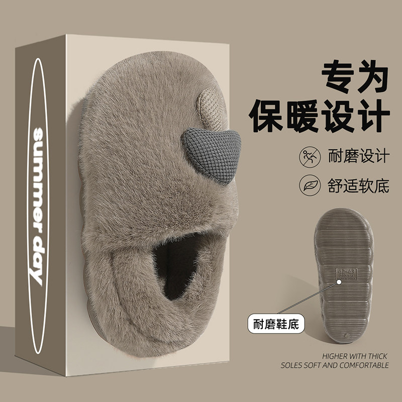 棉拖鞋女款秋冬天2024新款毛拖家居保暖加绒厚底毛绒情侣软底拖鞋