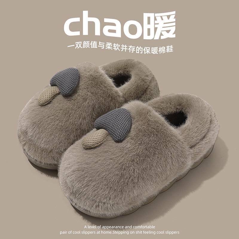 朴西棉拖鞋女士秋冬季厚底简约保暖室内居家用软底防滑情侣棉拖男