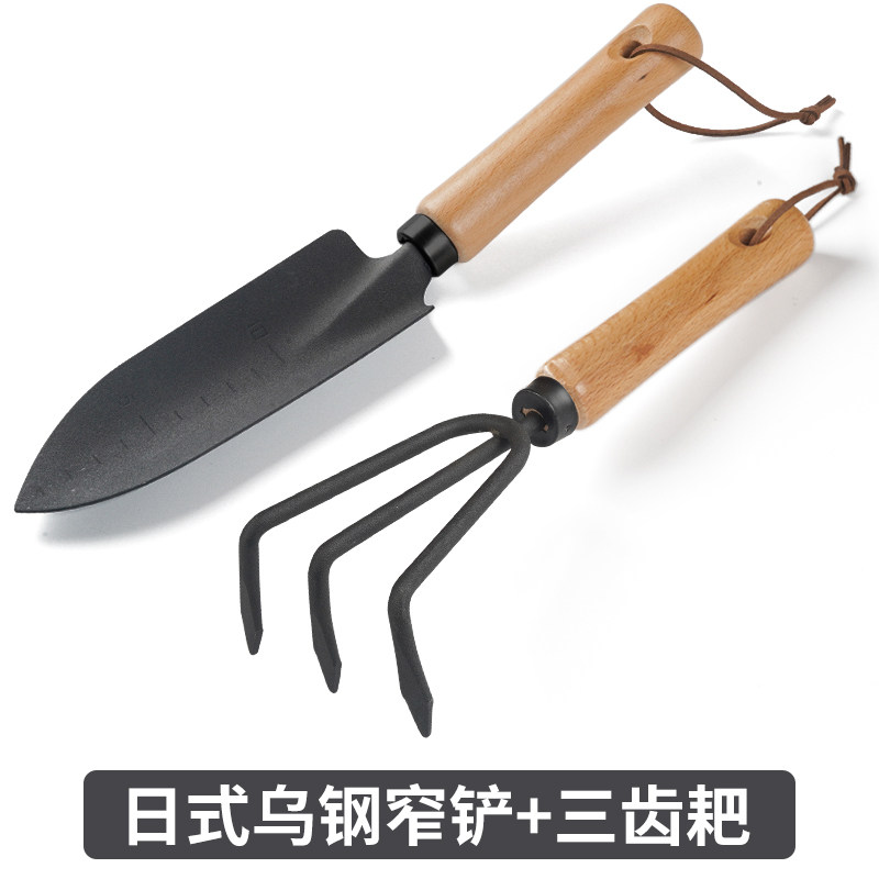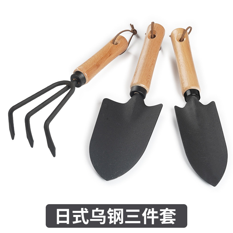 日式黑铲三件套园艺工具翻土种植赶海铲子耙子种花家居园艺铲用品