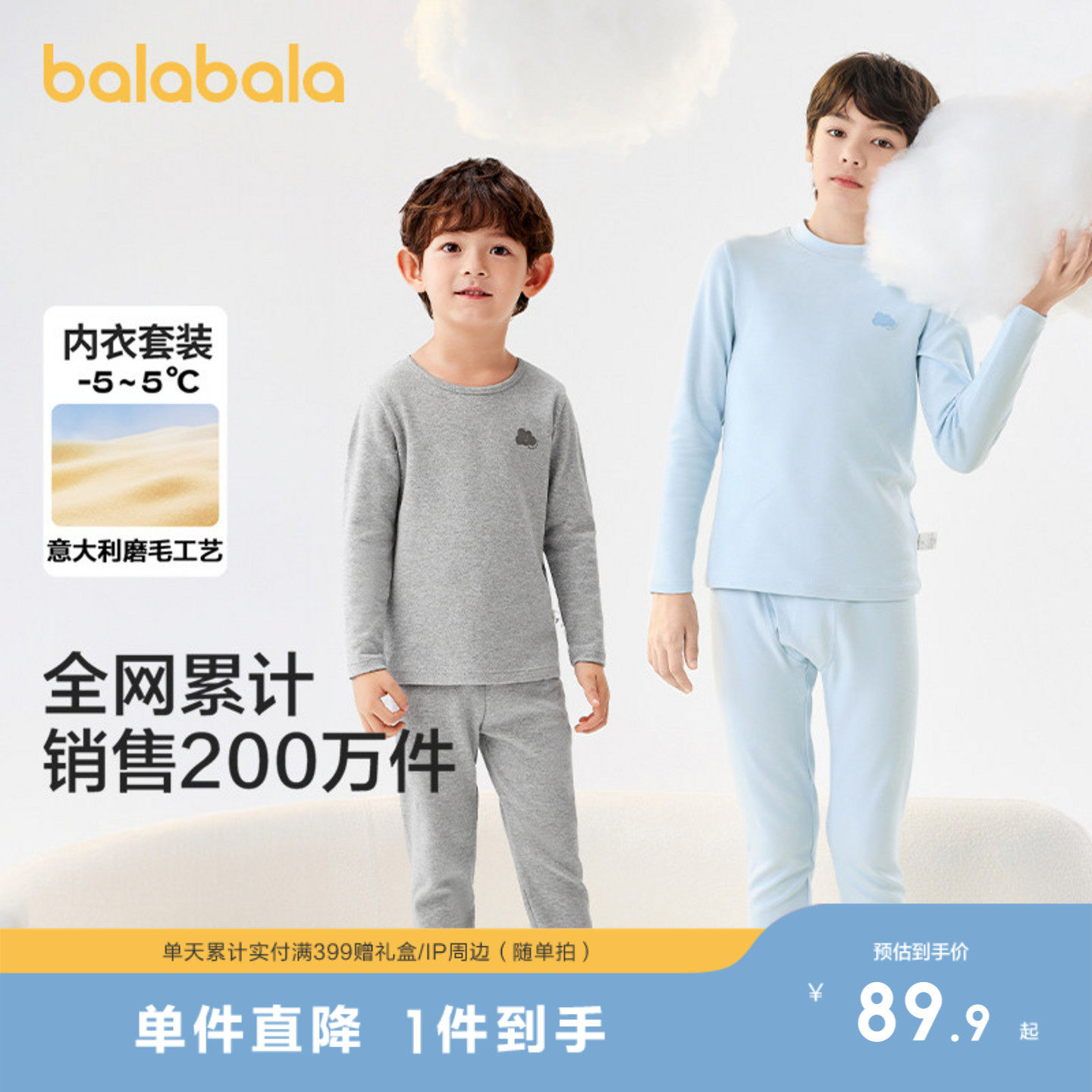 巴拉巴拉女童保暖内衣套装秋冬季加厚儿童秋衣秋裤打底睡衣A类棉