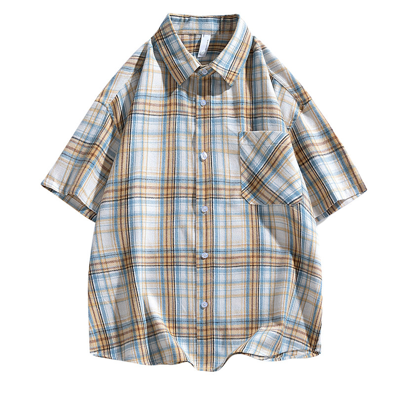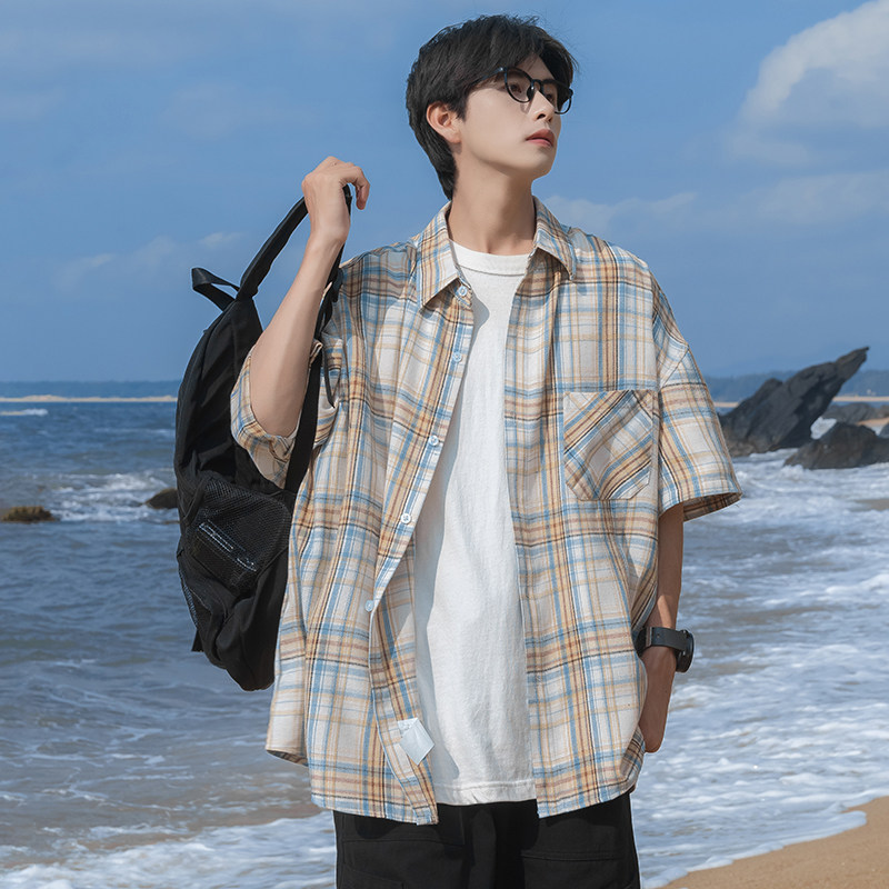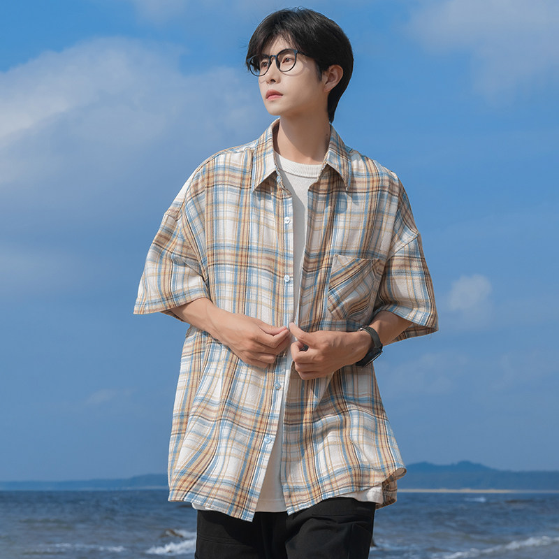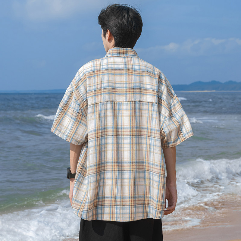 回力格子短袖衬衫男士夏季2025新款潮牌半袖男生冰丝休闲衬衣外套