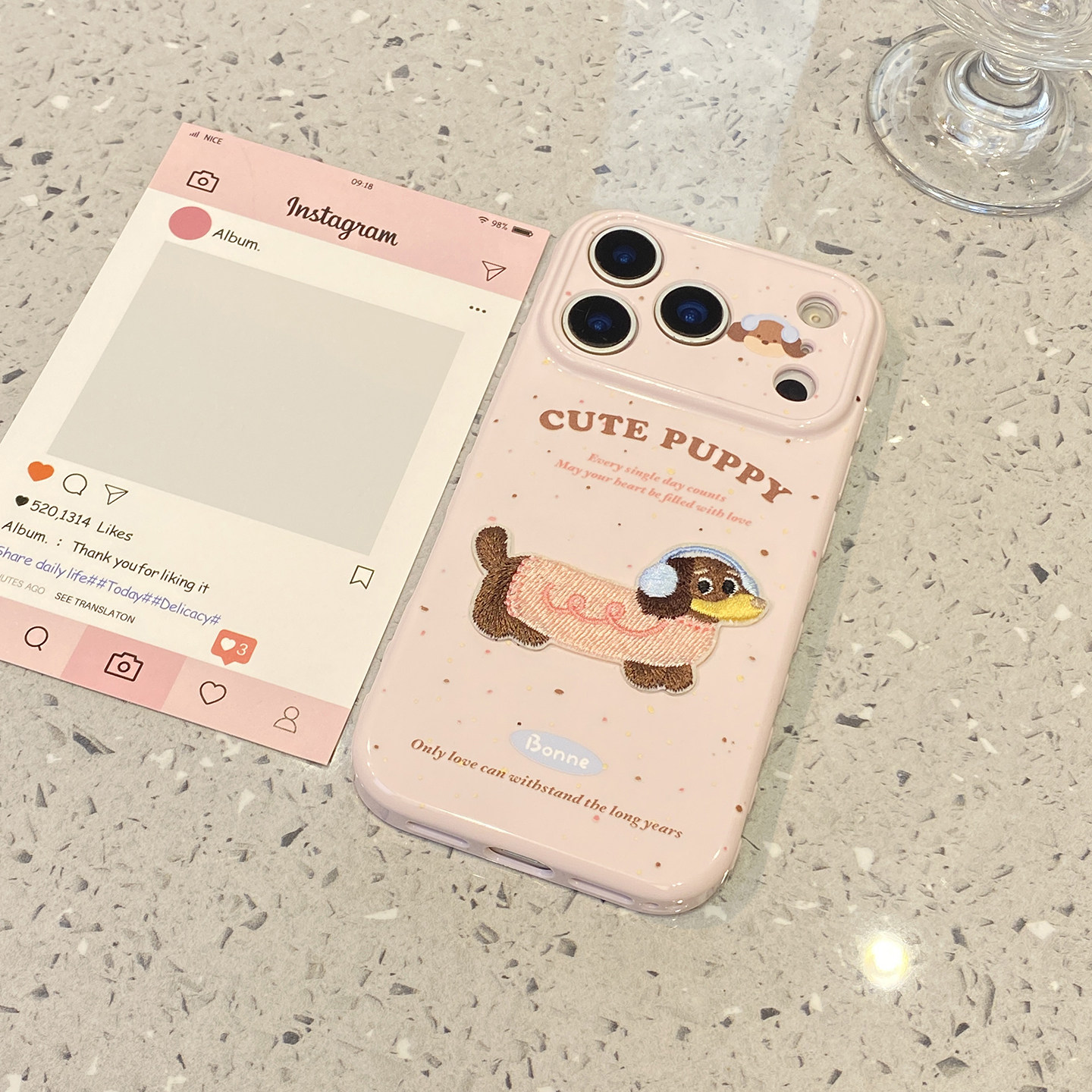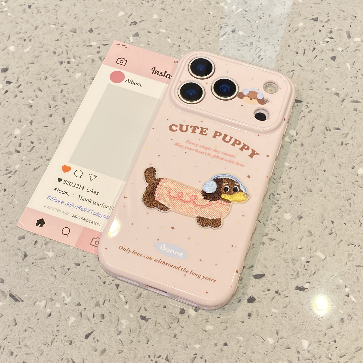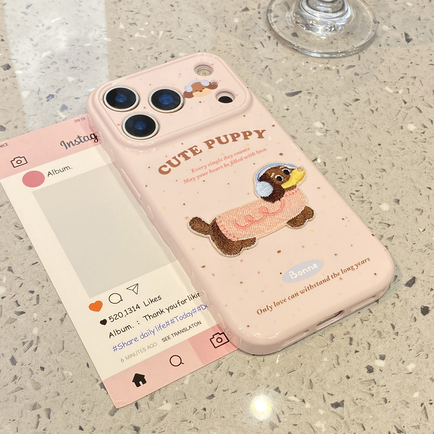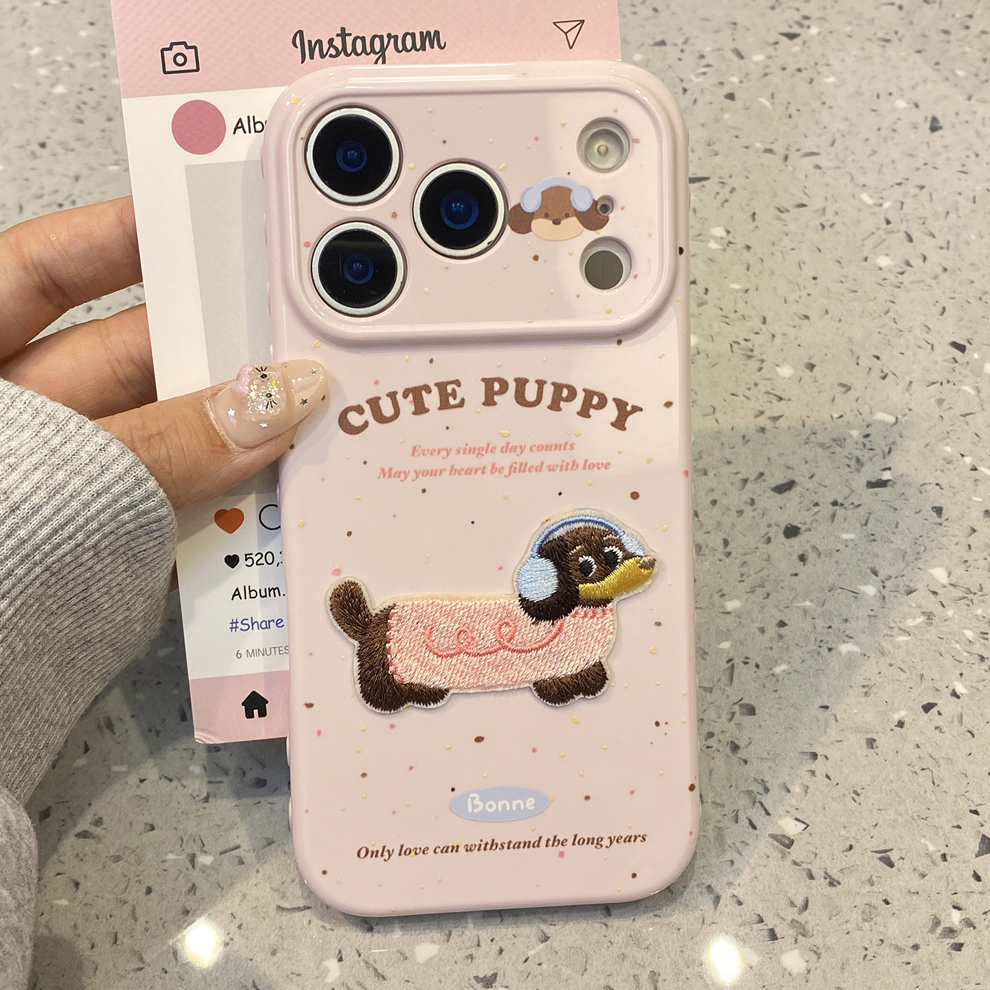 日韩可爱刺绣腊肠狗适用于苹果17pro手机壳iphone16保护套14全包13硅胶12新款15promax巨好看max超火手机套软