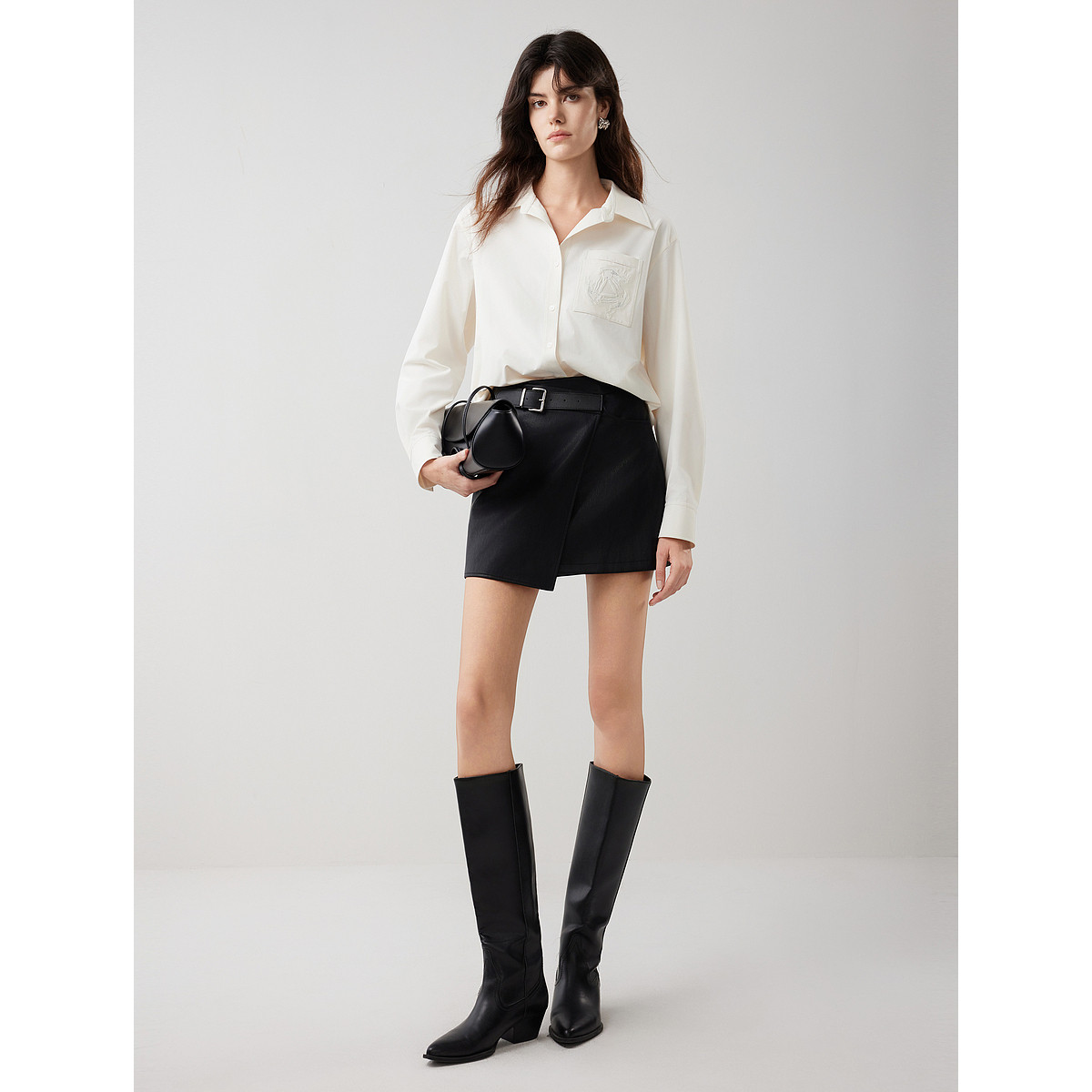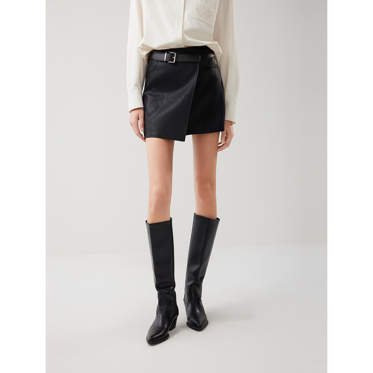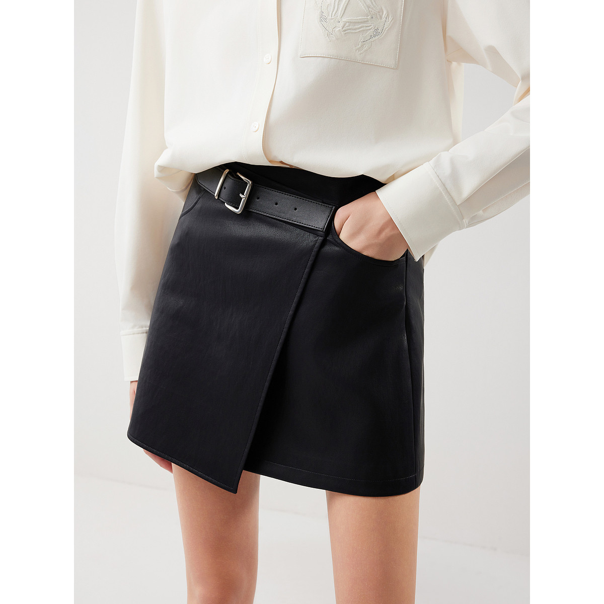 ELLE法式高级感不对称半身裙女2025冬季新款通勤时髦小众a字短裙