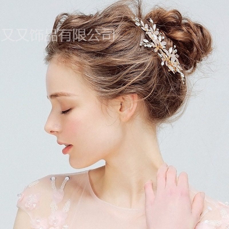 欧美发卡水钻盘发头饰新娘发饰边夹结婚饰品摄影道具女式新娘发夹