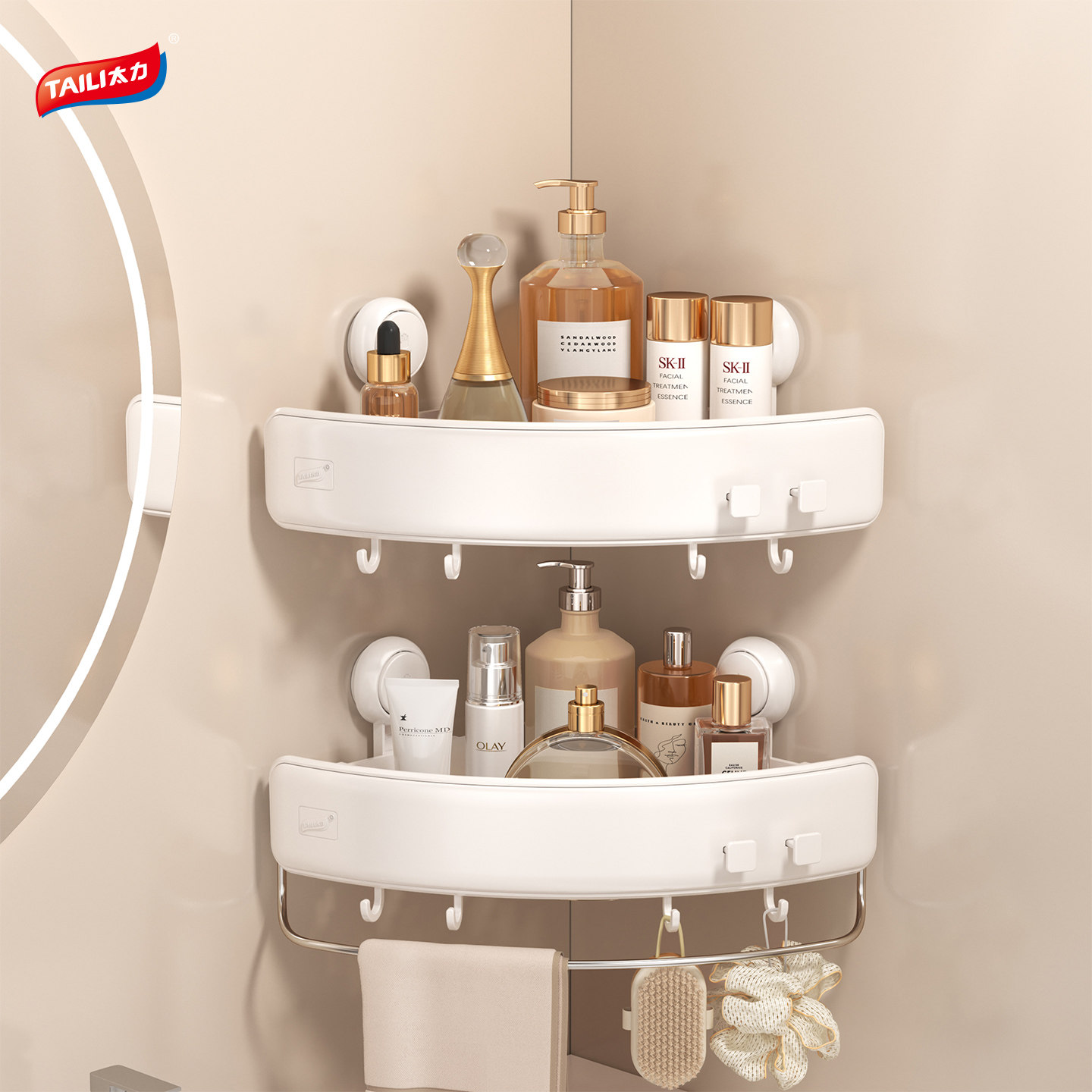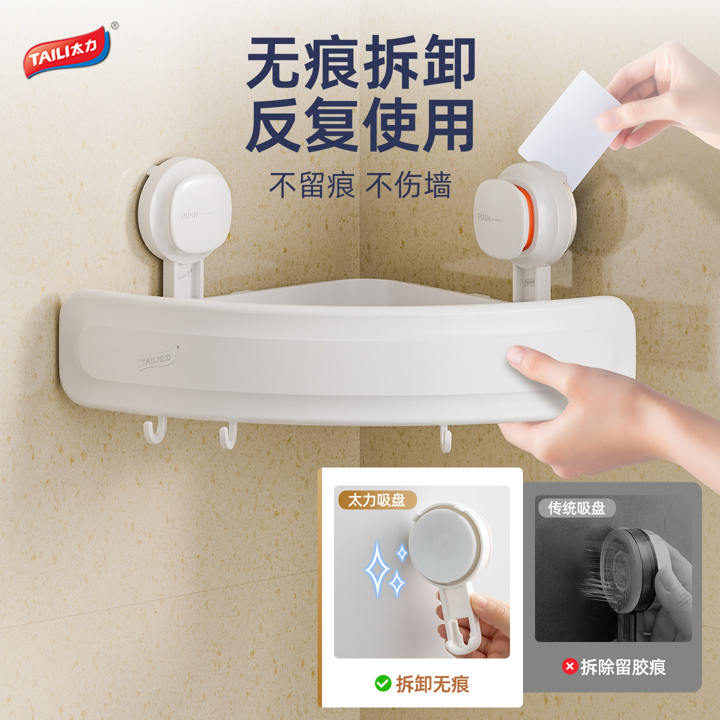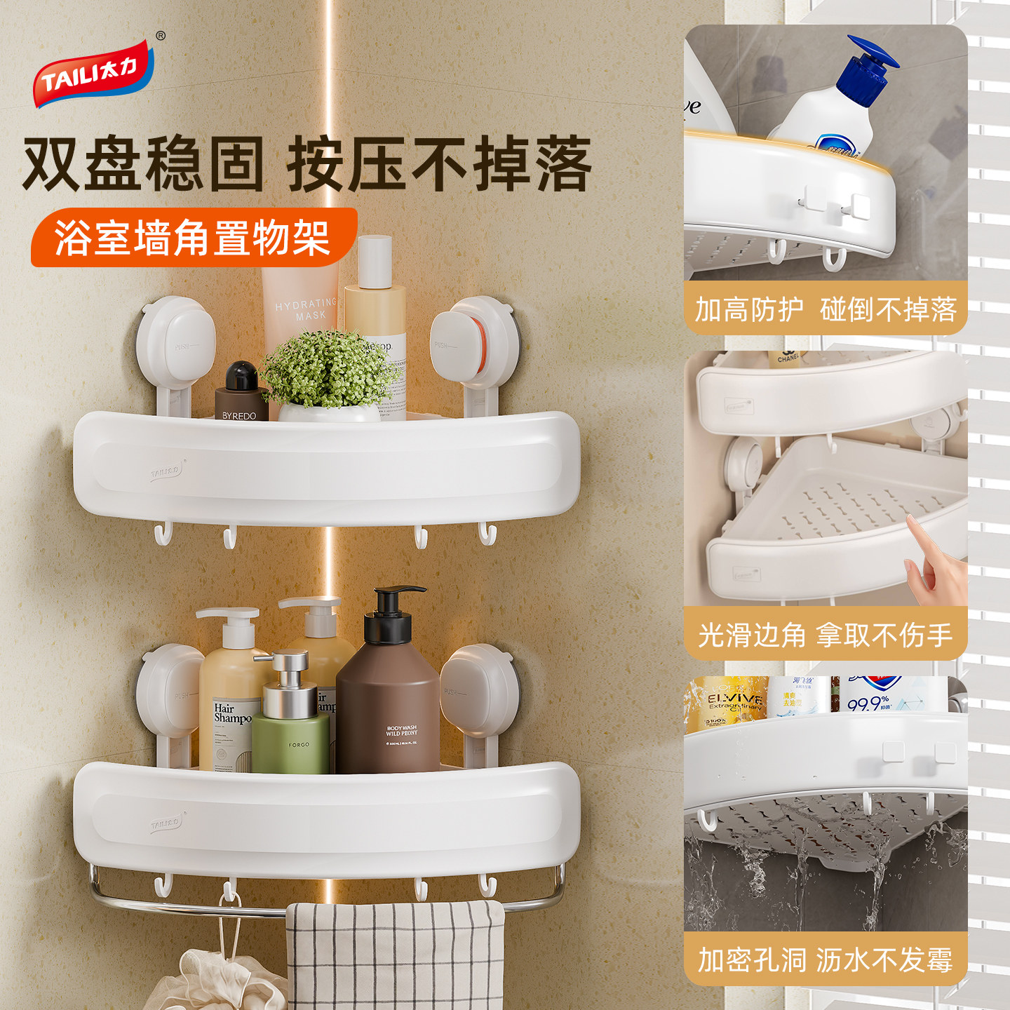 太力浴室卫生间转角置物架洗漱洗澡厕所壁挂强力吸盘三角收纳架子