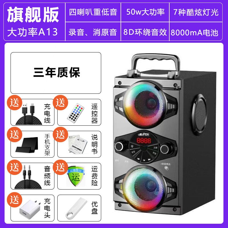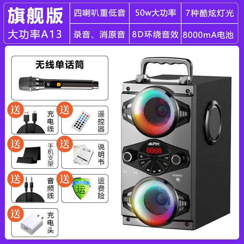 魅力无限 A52蓝牙音响高音质家用K歌超重低音箱带话筒炮户外广场