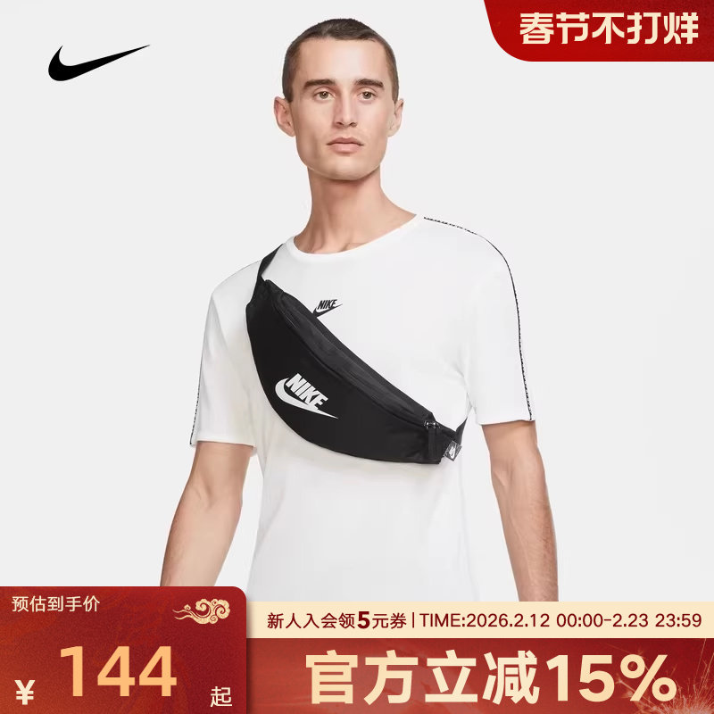 NIKE耐克黑色腰包男包女包休闲运动轻便收纳包斜挎胸包DB0490-010