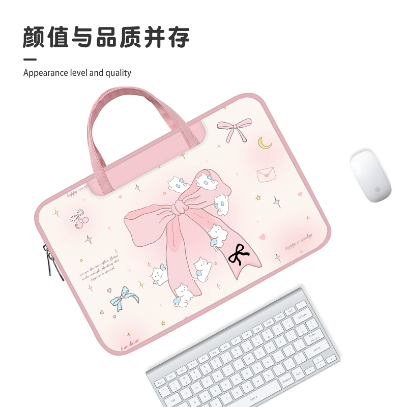 可爱蝴蝶结笔记本电脑包16寸手提苹果15.6寸华为matebook14联想戴尔14寸12寸女士新款平板收纳包