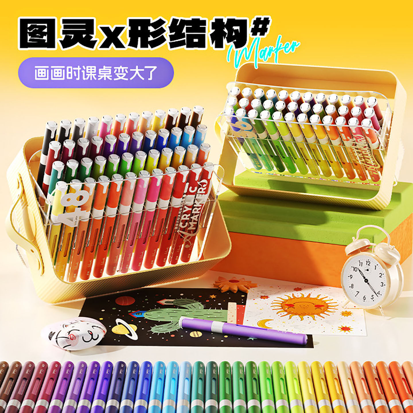 60色48色大容量丙烯马克笔盒装儿童专用可叠色不透纸幼儿园学生版软头丙烯笔可水洗水性水彩笔小孩画画笔