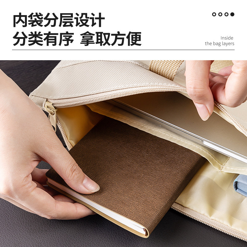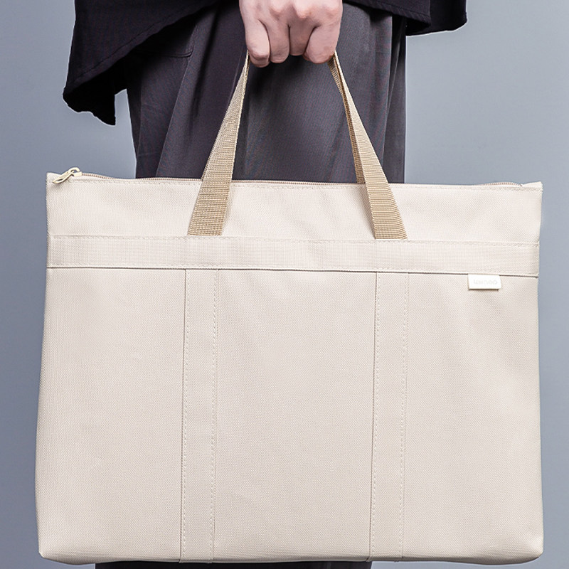 得力手提文件袋简约风大容量手拎公文袋A4双层拉链袋办公收纳整理便携公文包可外出手提袋文件包补习袋子学生