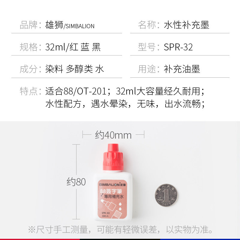 台湾雄狮SPR-32水性记号笔墨水 88签字笔墨水 水性补充液 多色选