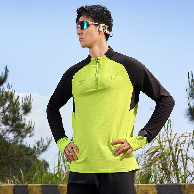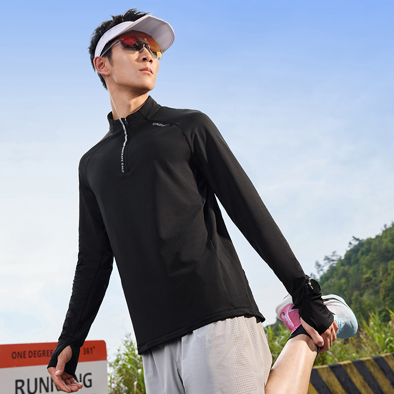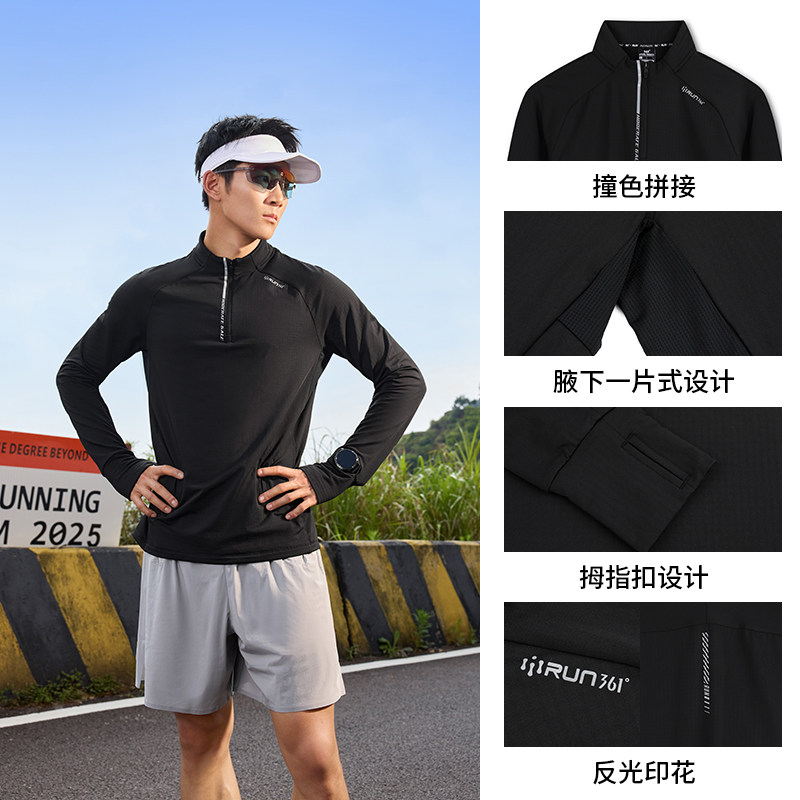 361速干运动T恤男2025冬季新款男士半开襟修身跑步服长袖运动上衣