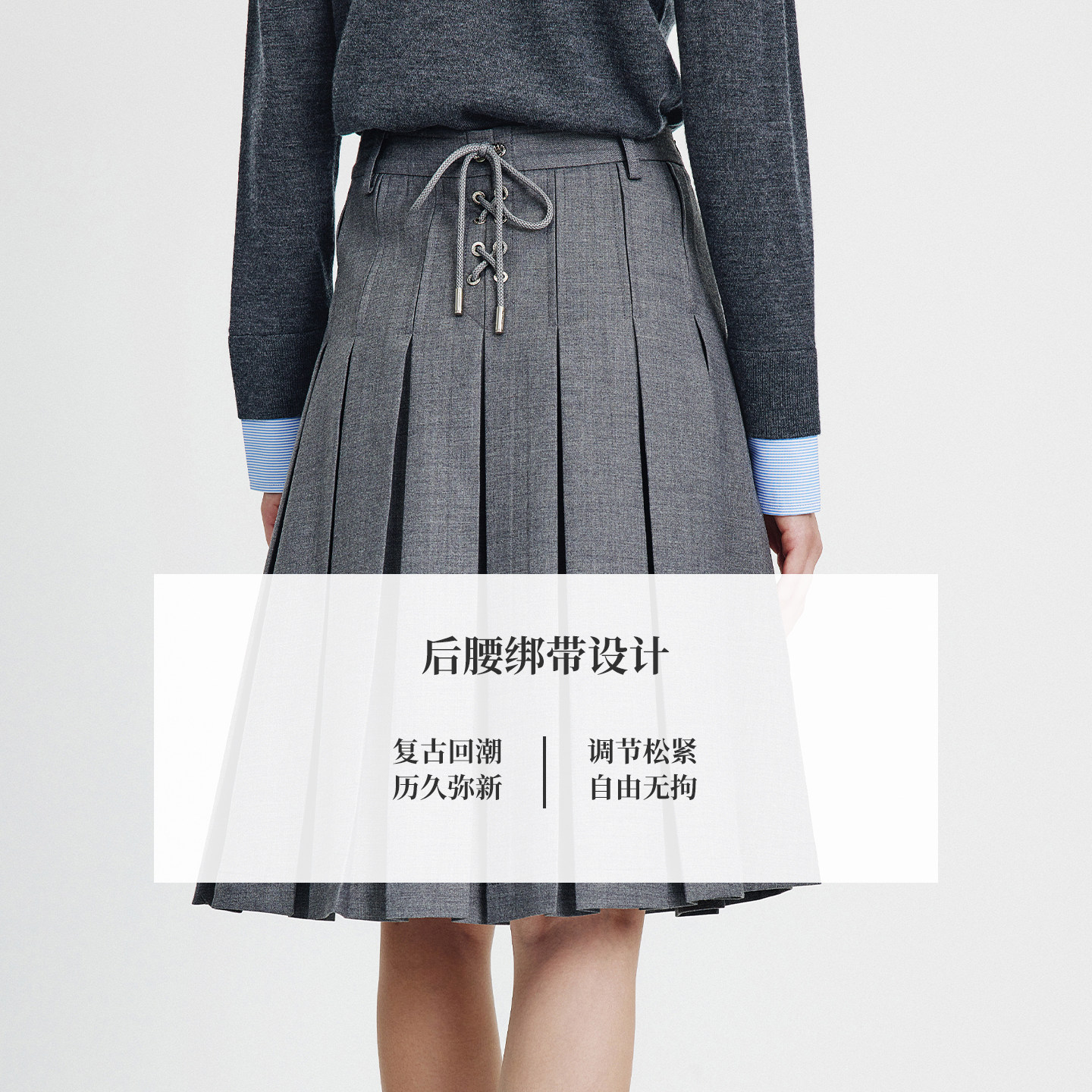 [何泓姗同款]Navigare小帆船休闲A字半裙女百褶裙春季气质半身裙