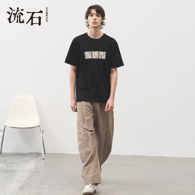 RS男装夏装时尚印花短袖T恤2026新款夏季男士设计感高端体恤上衣