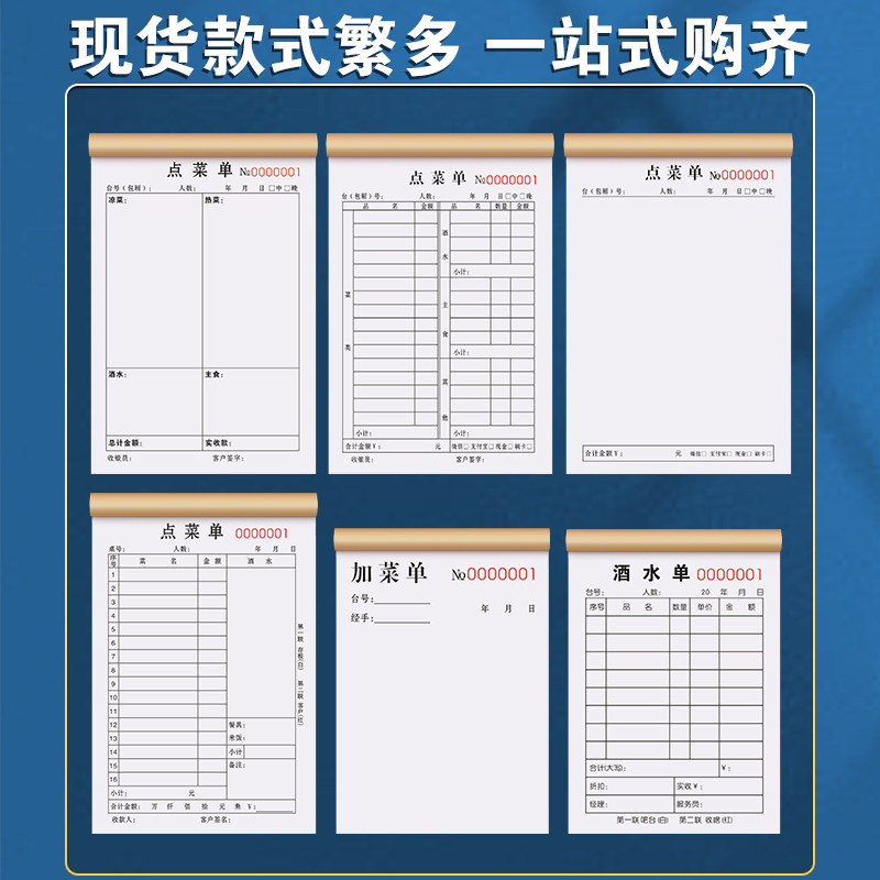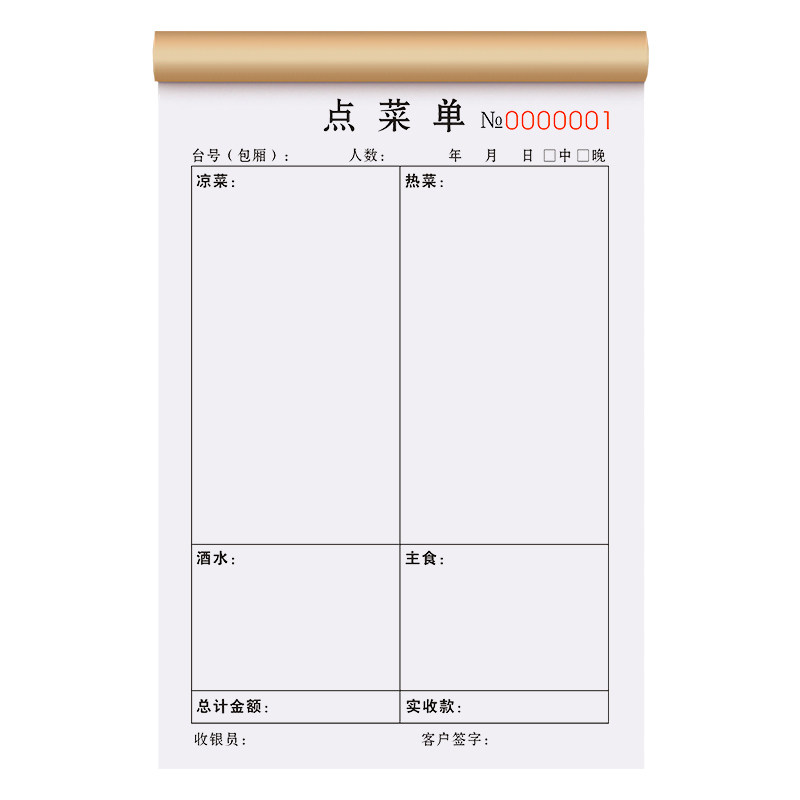 点菜单一联定制用菜单本单联中餐厅素食馆开票本1连小龙虾烤鱼店记账单1联砂锅粥菜馆酒馆食堂采购验收单一连