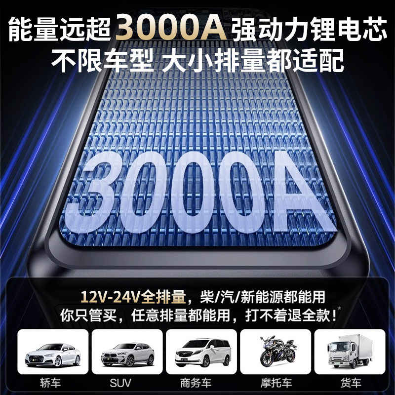 汽车应急启动电源车载充气泵一体机电瓶搭电宝紧急强启动打火神器