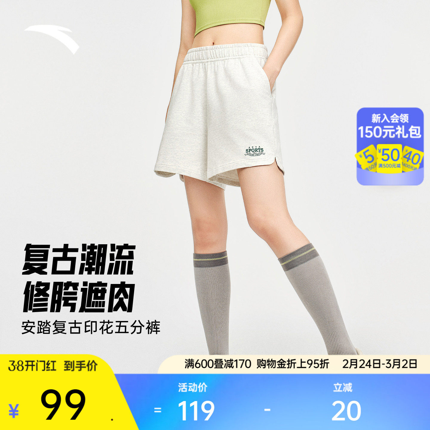 安踏休闲短裤女士夏季宽松透气潮流美式五分裤子运动裤162538309
