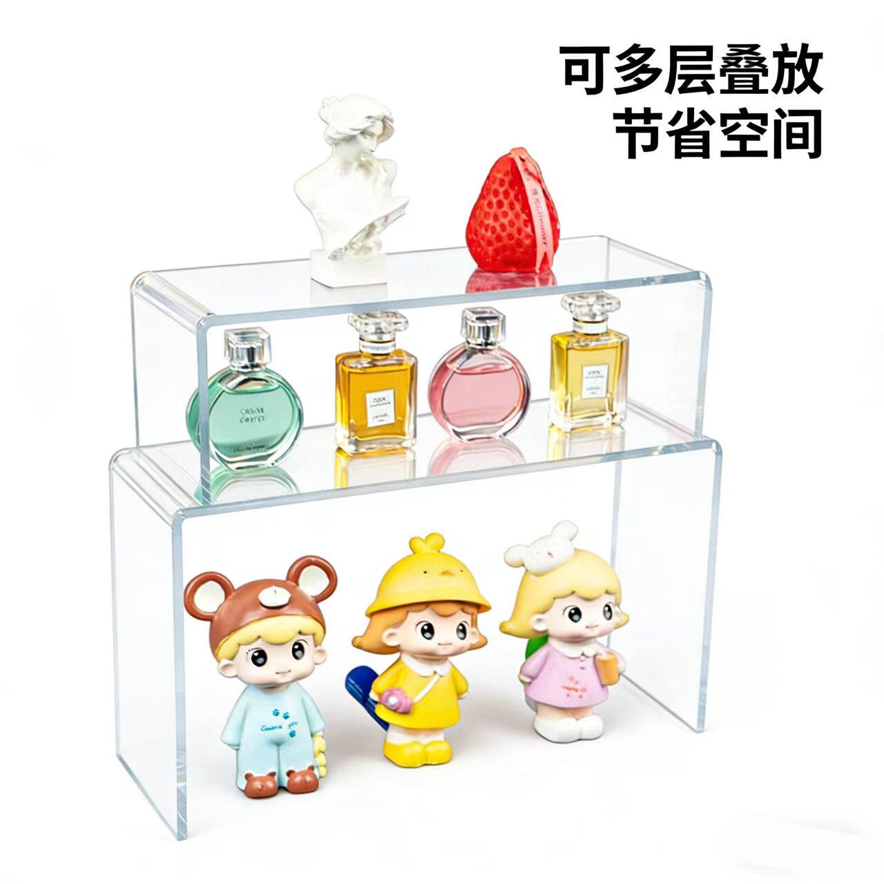 亚克力置物透明U型展示架桌子衣柜收纳分层隔板手办盲盒香水化妆品陈列展示架