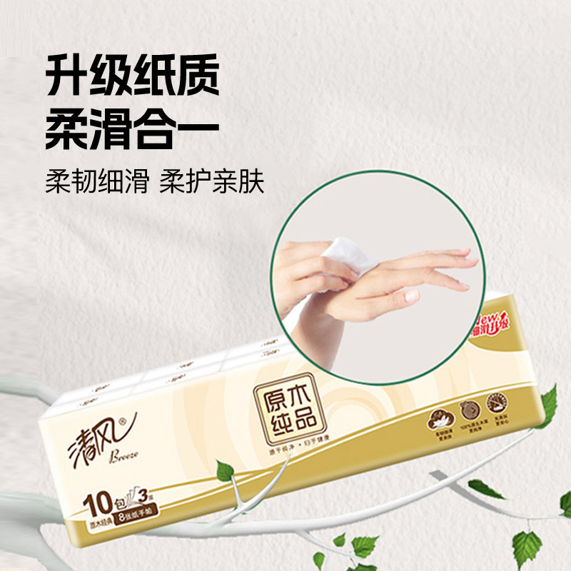 清风手帕纸原木纯品3层8张10包条装家用实惠装宿舍小包手帕纸纸巾