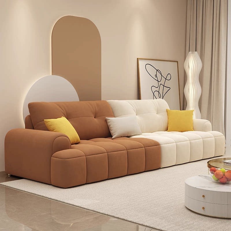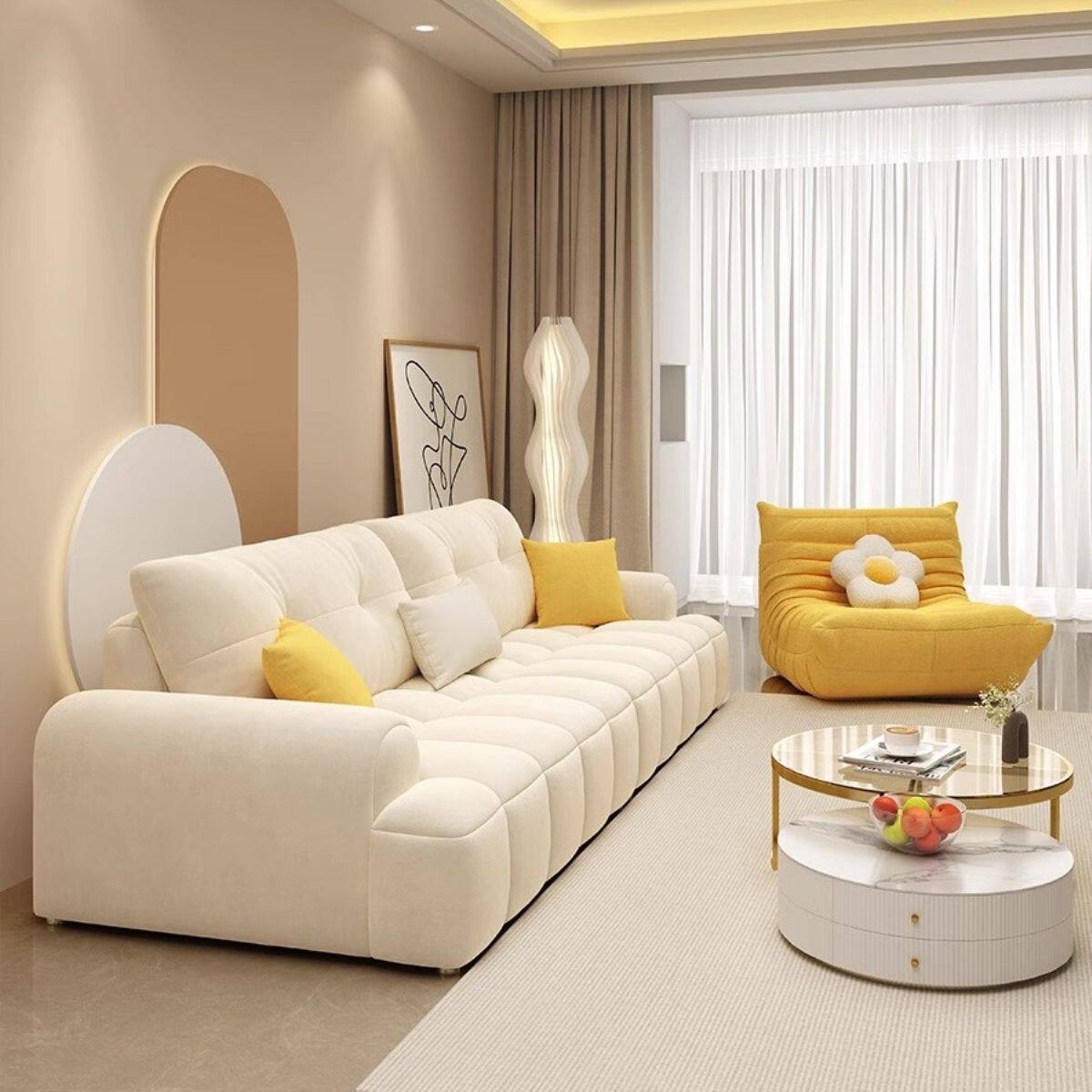 奶油风饼干沙发客厅现代简约公寓出租房小户型泡芙直排布艺沙发