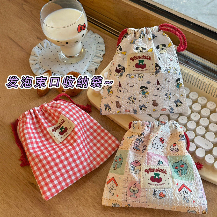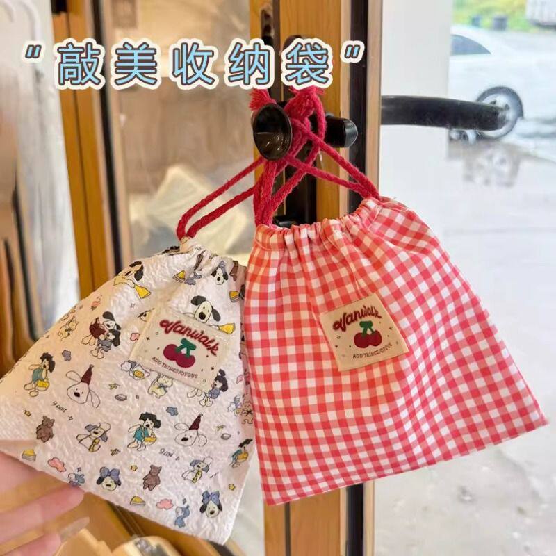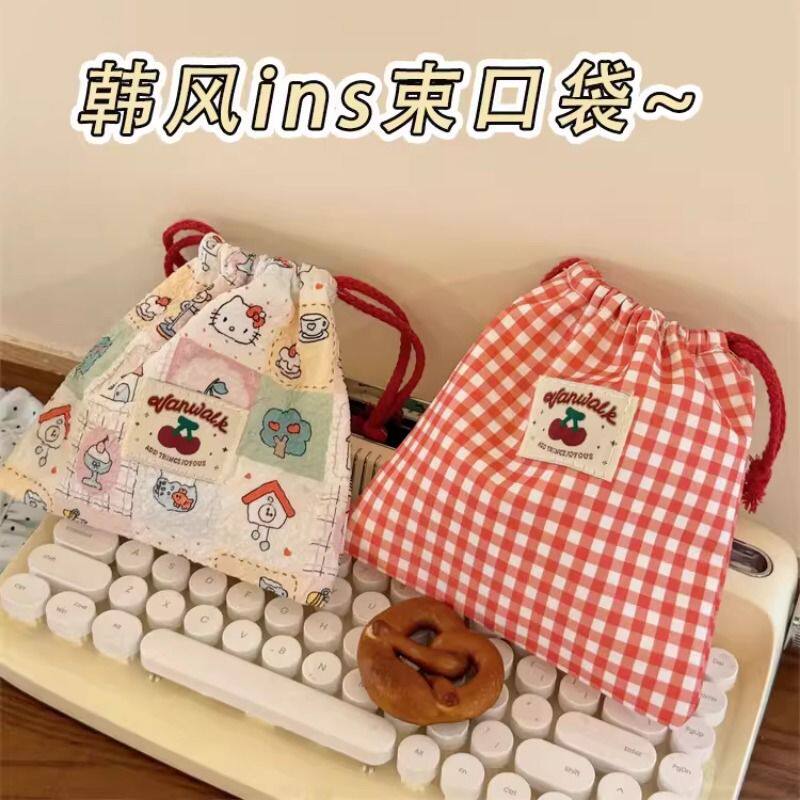 抽绳束口袋可爱樱桃收纳袋棉布化妆收纳包外出旅行姨妈巾布袋小包