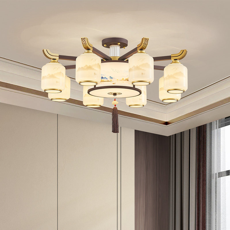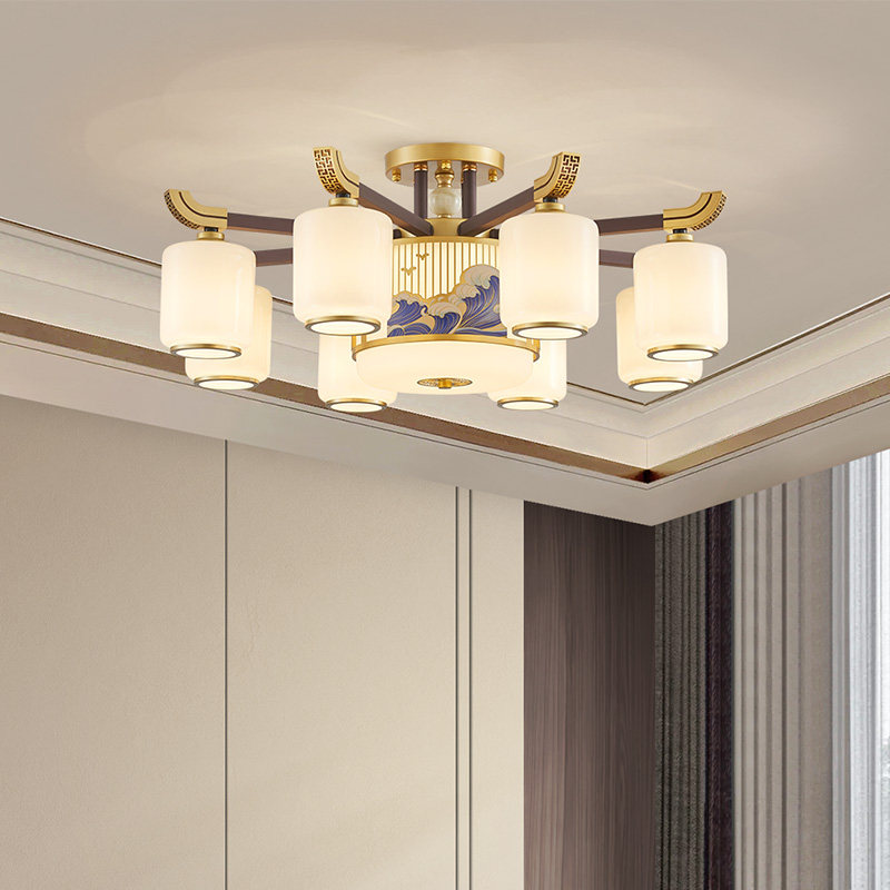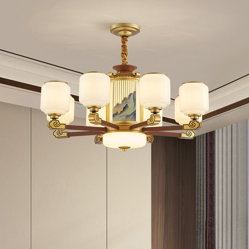 新中式吊灯客厅中古风卧室灯轻奢新款餐厅大气别墅大厅楼梯珐琅