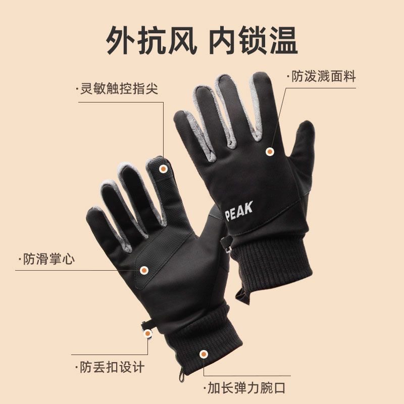 骆驼手套冬季男士户外跑步运动防寒薄绒保暖女可触屏防滑骑行手套