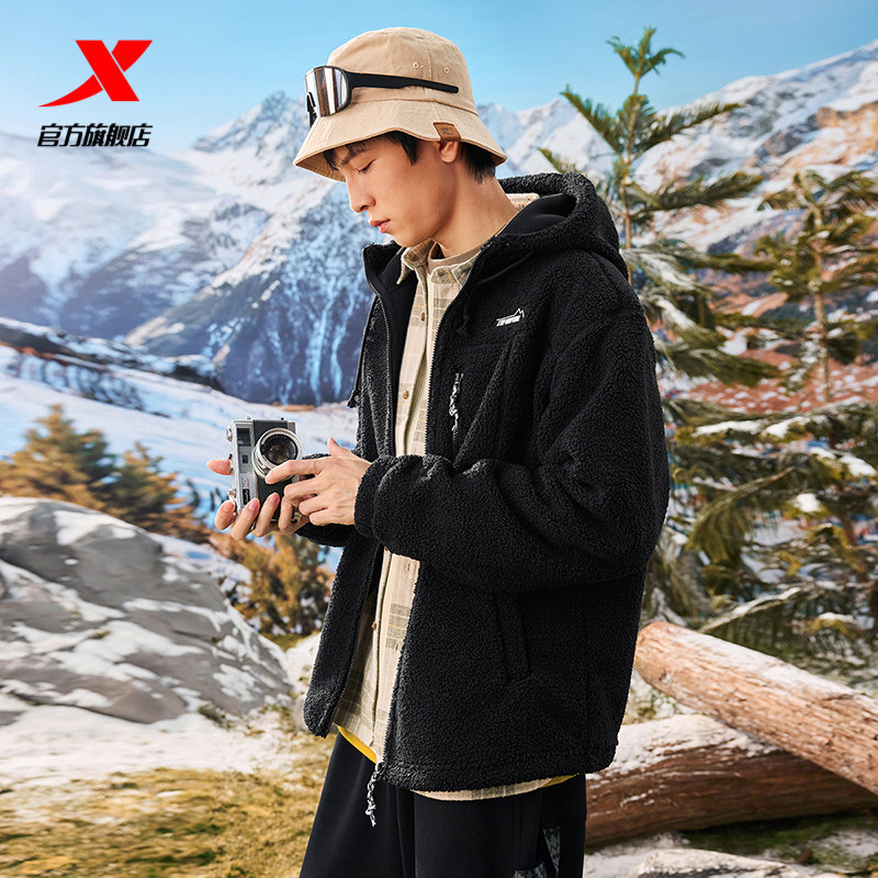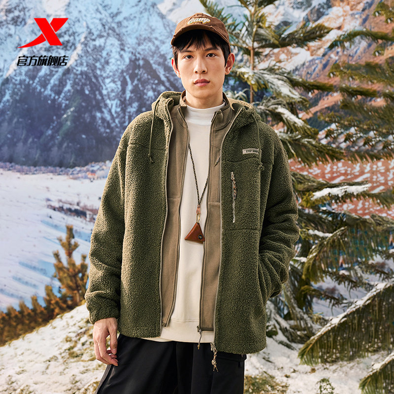 特步情侣加绒外套2026秋冬季新款男女同款保暖风衣户外运动夹克服