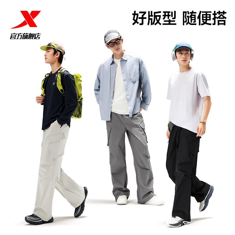 特步工装裤男2026年新款户外防泼水裤宽松直筒裤休闲运动黑色裤子