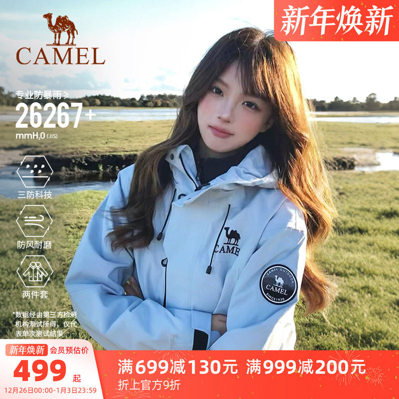 骆驼户外雨神冲锋衣男三合一羽绒服冬季防水外套女三防旅游滑雪服