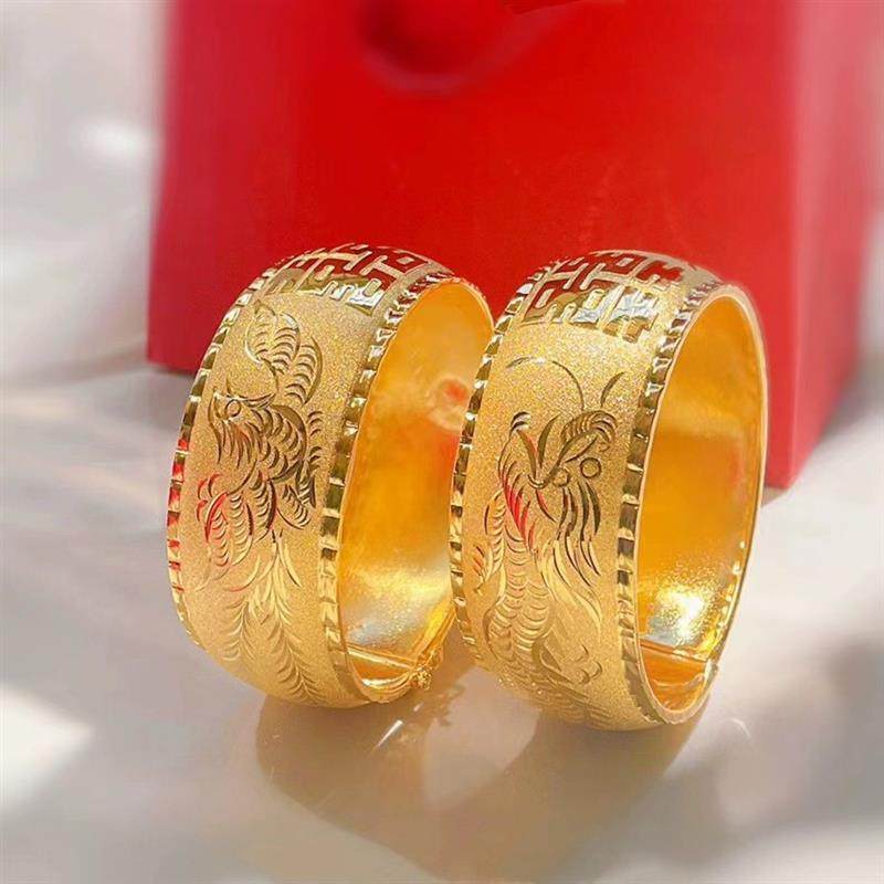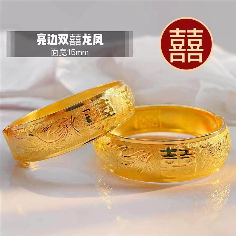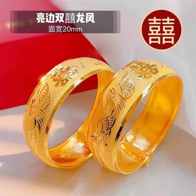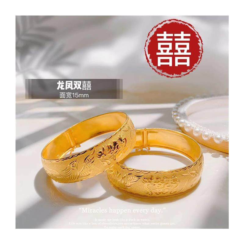新款龙凤手镯新娘彷金首饰三金套装假黄金沙金镯子久不掉色镀金
