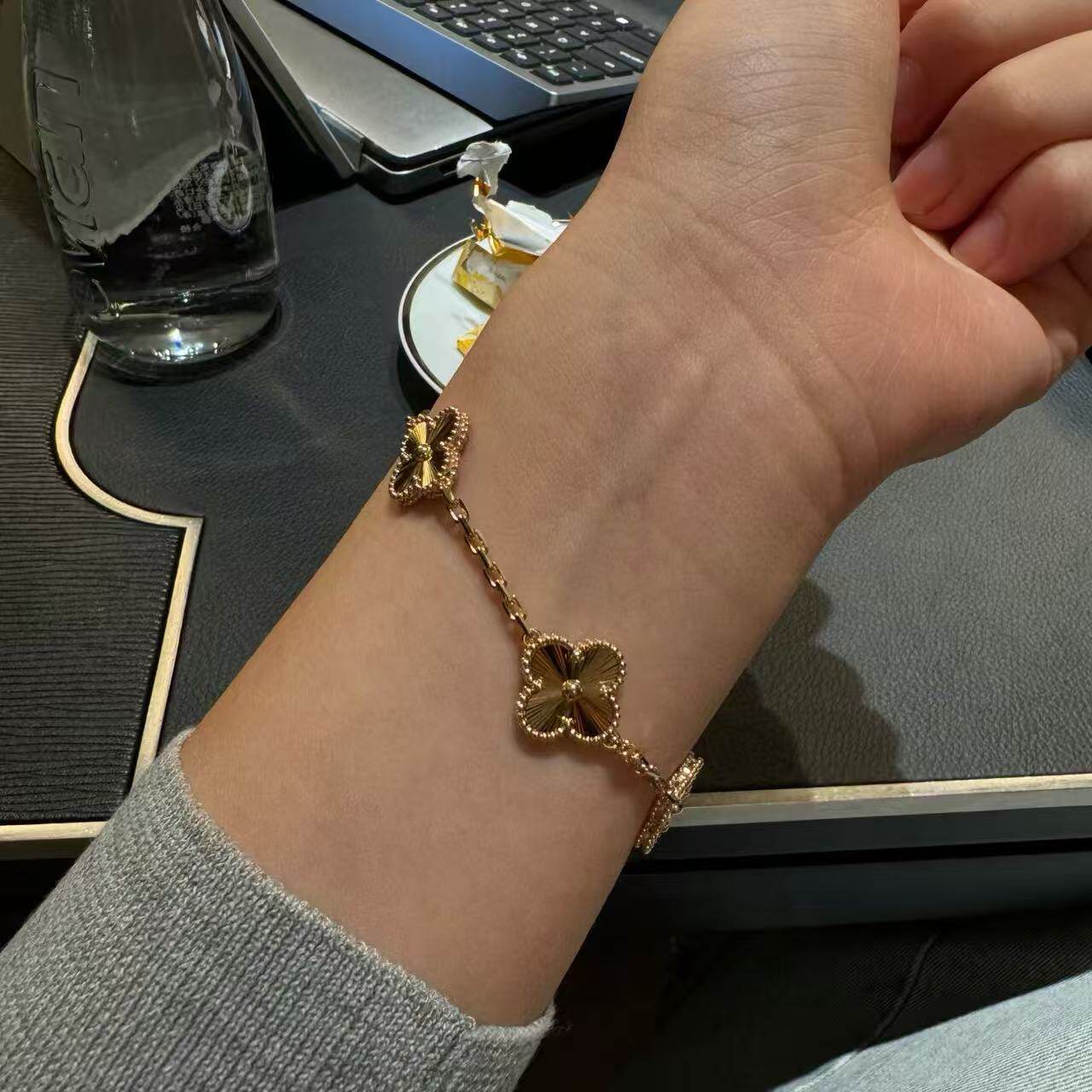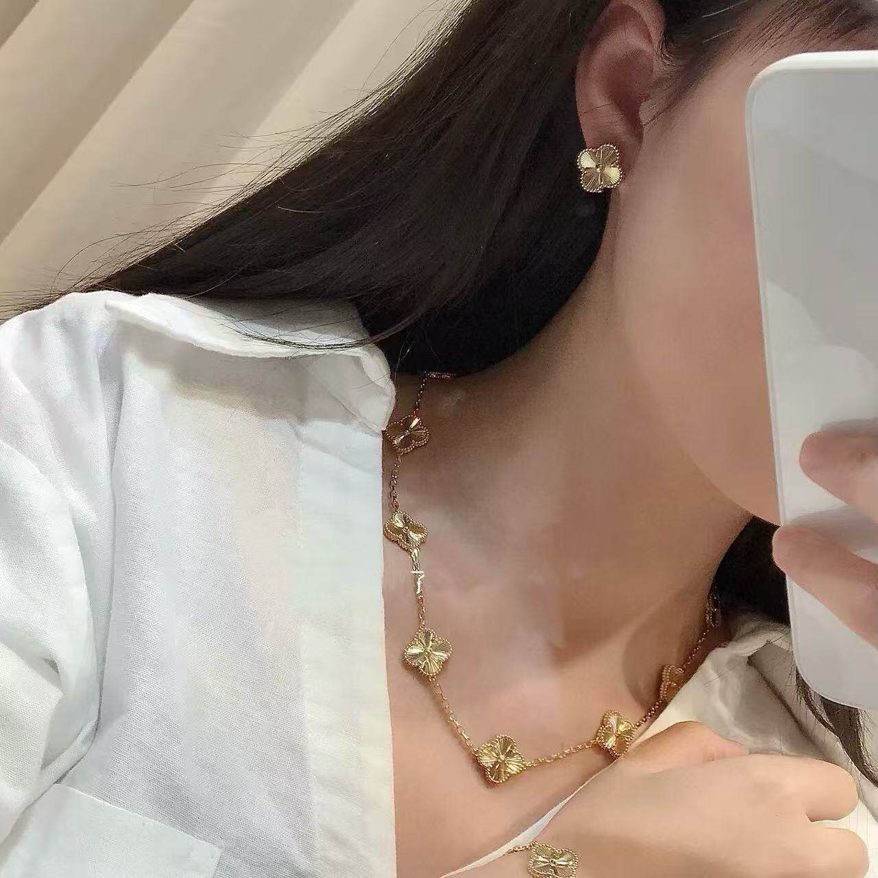 幸运草镭射项链高定品质18k金镭射白金镭射五花手链十花项链指戒