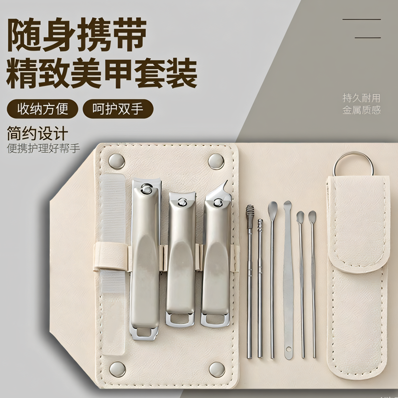 高品质 指甲剪刀钳套装男女家用斜口修甲美甲工具掏挖耳勺10件套