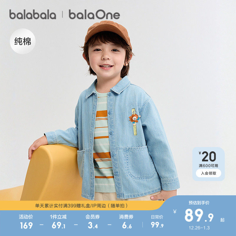 巴拉巴拉童装宝宝长袖衬衫纯棉牛仔外套男童衬衣女童2025新款秋装