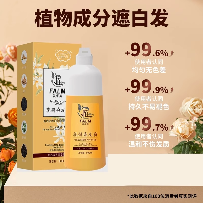 花瓣染发霜植物天然黑茶色华士植萃泡泡染在家染发剂膏花香遮白发